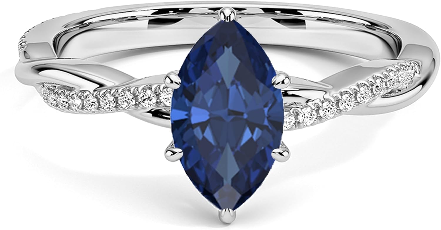 This Handmade Marquise Shape Swirl Twisted Engagement Ring is made from high-quality 925 sterling silver, known for its lustrous appearance and durability.. It is available in 14K White, Yellow, and Rose Gold Plating with Highly Glossy Finished. It features Simulated Marquise Cut Blue Sapphire Stones set in prong Setting. This Engagement Ring is easy to use, Perfect for any occasion.