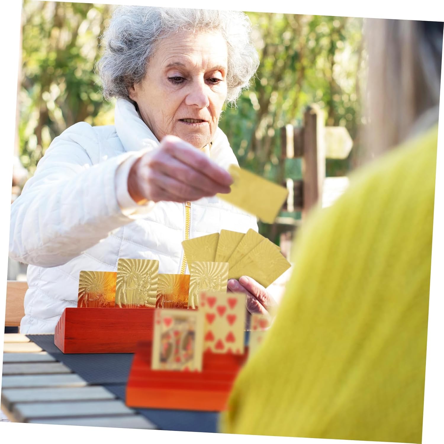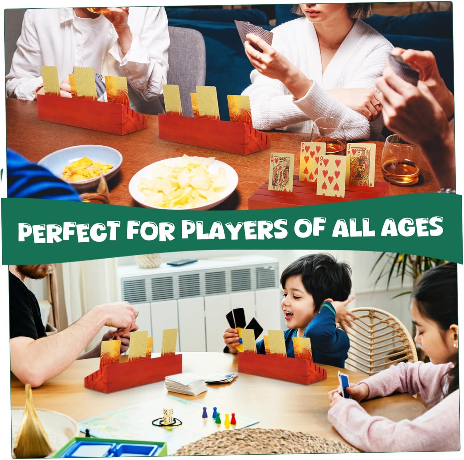 Package Include 2 x card stands Features -Stylish and functional: The sleek and sophisticated game card holder also elevates the aesthetic of your game , making it a great addition to any game setup wooden stand. -Bring you convenience: The playing card holder is designed to display your cards clearly and , making them easy to access game card stand. -Gaming convenience: The playing card stand allows for labor-saving playing, enabling you to on your game without the need to hold your cards by hand playing card tray. -Size: 25.00X8.00X5.90cm/9.82X3.14X2 card deck holder. -Wood construction: Crafted from sturdy wood, the card holder is sturdy and , ensuring use and a touch of elegance. -Material:Wood bridge card holders -Ideal for all ages: Suitable for players of all ages, including those with hand mobility, making card games more accessible and enjoyable for everyone wood card holder. -Color:Brown index card holderGoods Descriptionplaying card tray racks This accessory is designed to hold your cards securely, giving you the freedom to concentrate on your game.displaying base Take your card games to the next level with our Wooden Stand.card deck holder Made from wood, the stand is both and stylish, making it a great addition to any game setup