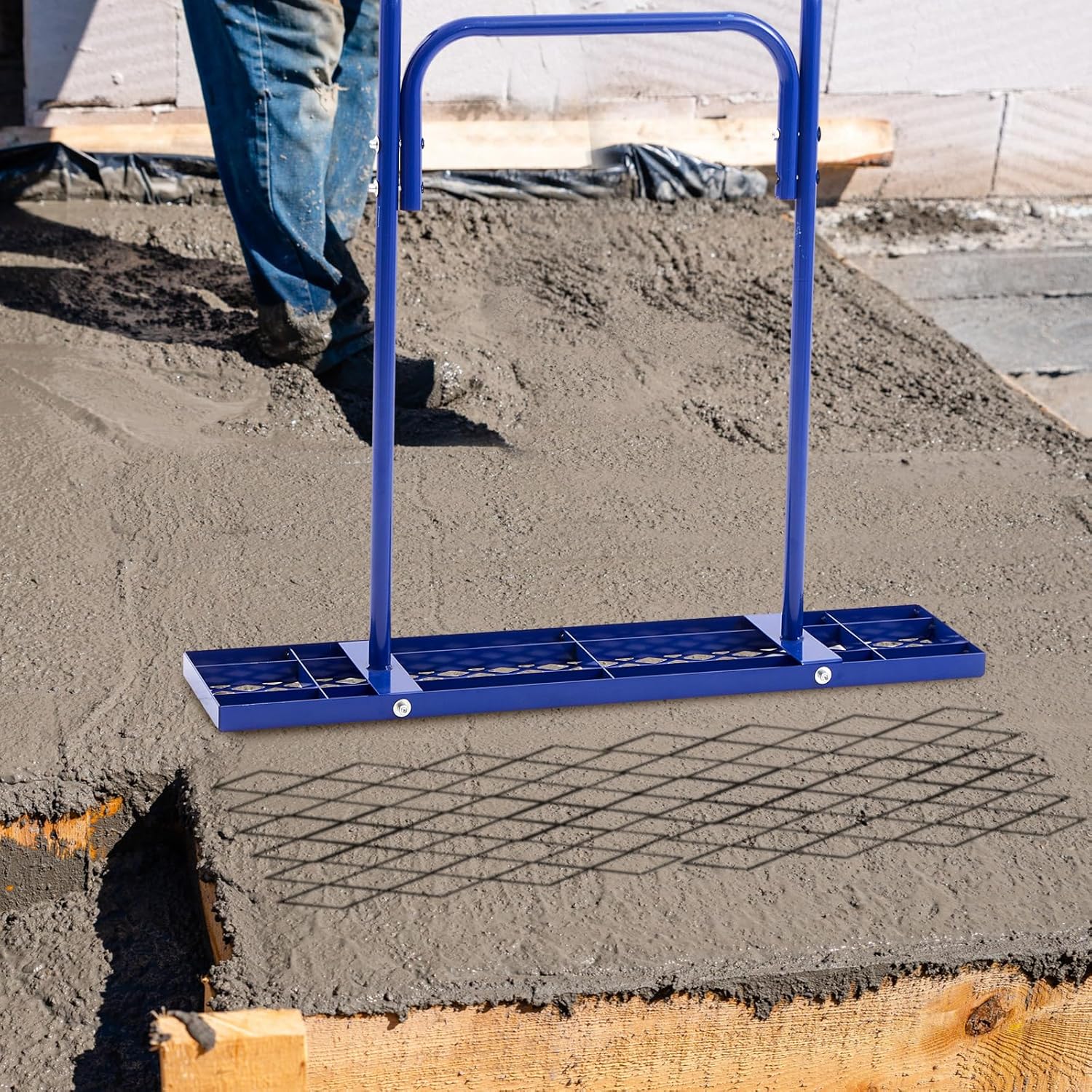 Features: Whether you're working on road construction or applying it for semi-dry concrete consolidation, this tamper tool ensures a reliable compaction process that improves surface texture and integrity consistently. This feature is crucial for prolonged application, allowing for a smoother operation while ensuring precision in compacting tasks, thereby enhancing the overall handling experience for every user. Specifications: Material: iron Color: blue Size: about 36 x 8 x 33.8 inches Package includes: 1 X concrete tamper Notes: Manual measurement, please allow slight errors on size. The color may exist a slight difference due to different screen displays
