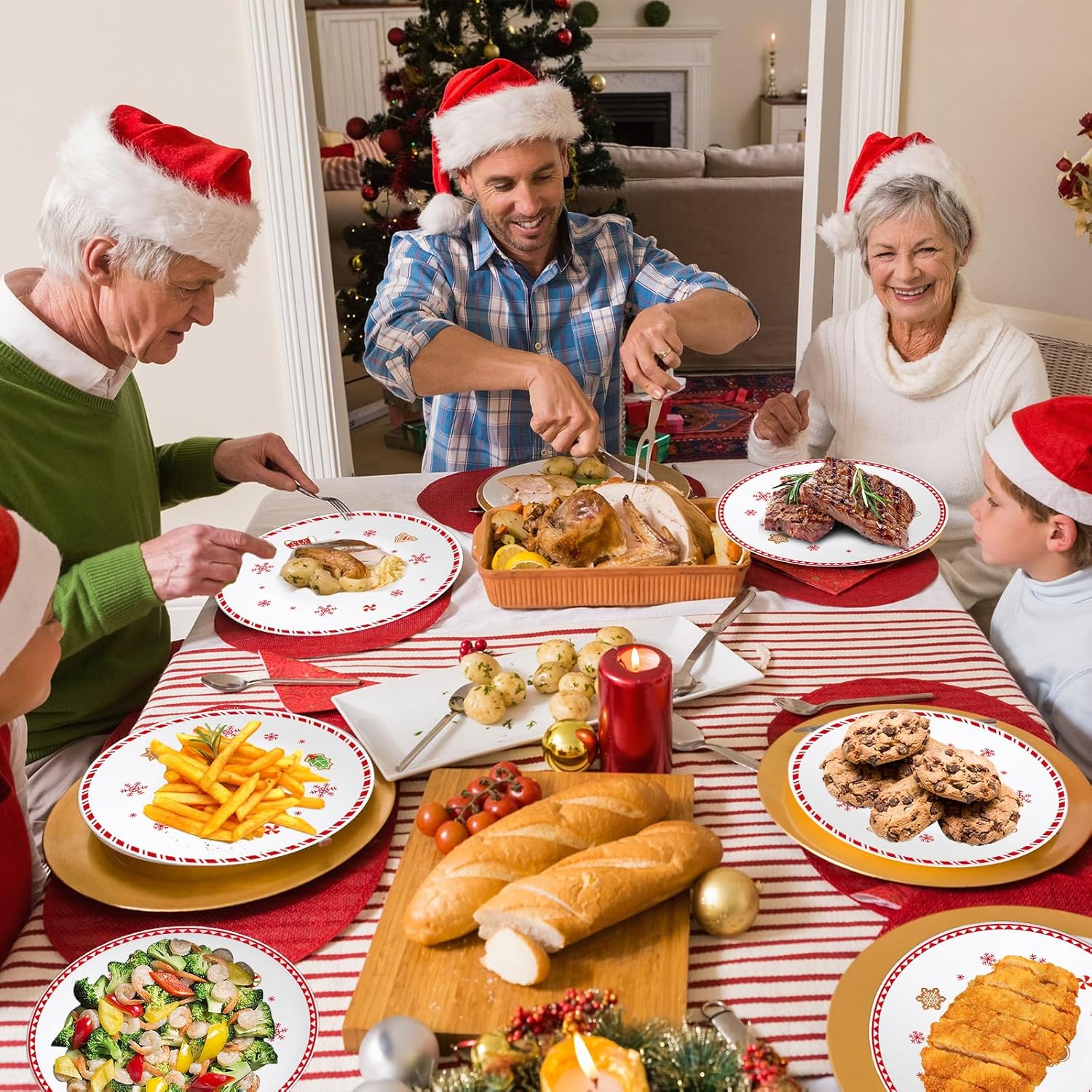 4 Set 10 Inch Christmas Dinner Plates Melamine Christmas Gingerbread Man Dinnerware Set Reusable Xmas Tree Gingerbread House Melamine Plate Dishwasher for Creatively Drop Resistant Cute Plastic Dish Add a touch of holiday charm to your table with our melamine Christmas dinner plate set. Featuring adorable gingerbread men, cozy gingerbread houses, and classic Christmas tree designs, these Xmas gingerbread party decorations bring festive cheer to every meal. Specifications: Material: Melamine Color: colorful Package Includes: 4 x 10-inch melamine Christmas dinner plates Each reusable Christmas holiday melamine plate is ideal for family gatherings, Christmas parties, gingerbread theme parties, and more, adding a touch of holiday charm to any table setting.