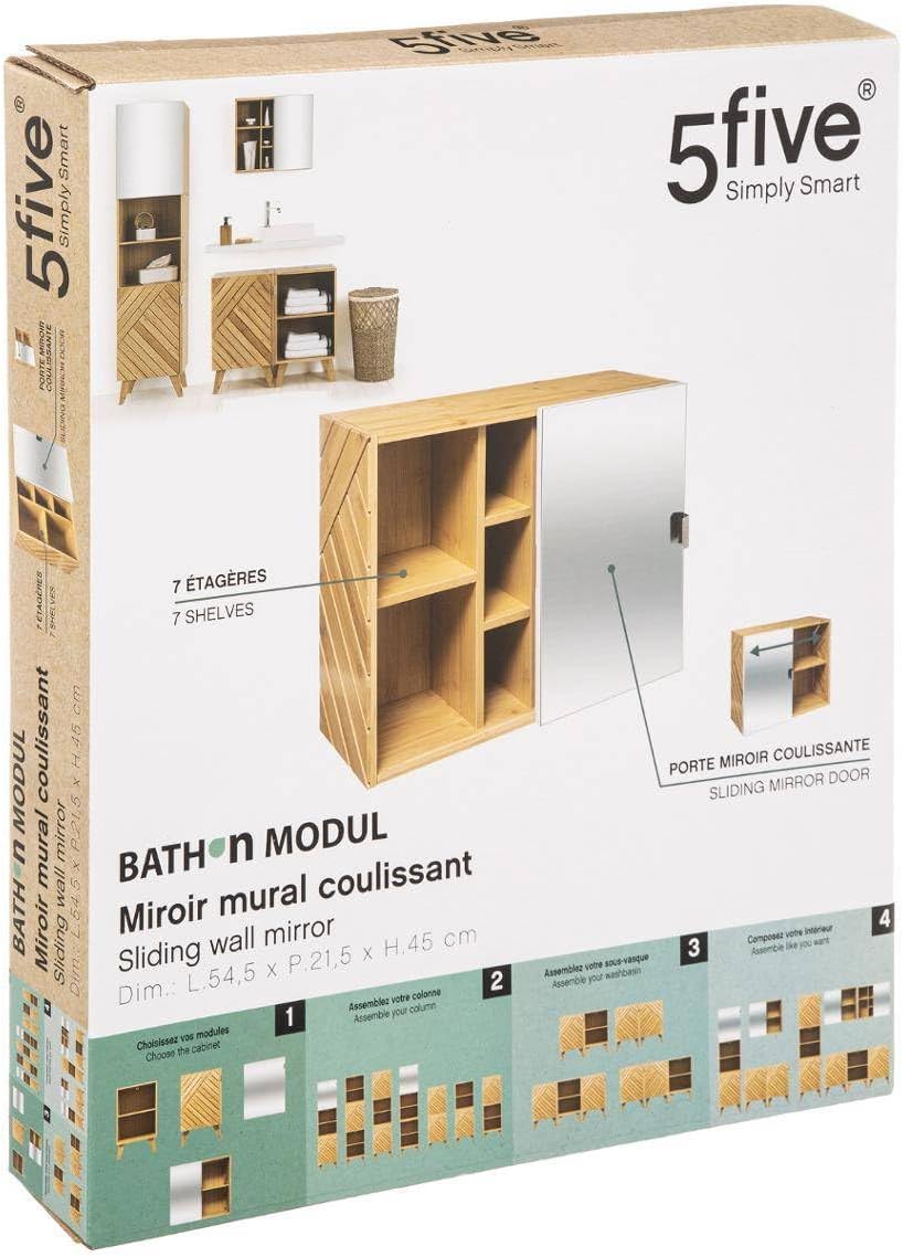 Five Bathroom Cabinet Sliding Door Mirror 7 Shelves Height 45 cm (-) Size: L. 54.5 x 21.5 x H. 45 cm. Material: MDF wood. Sliding Door Mirror - 7 Shelves -