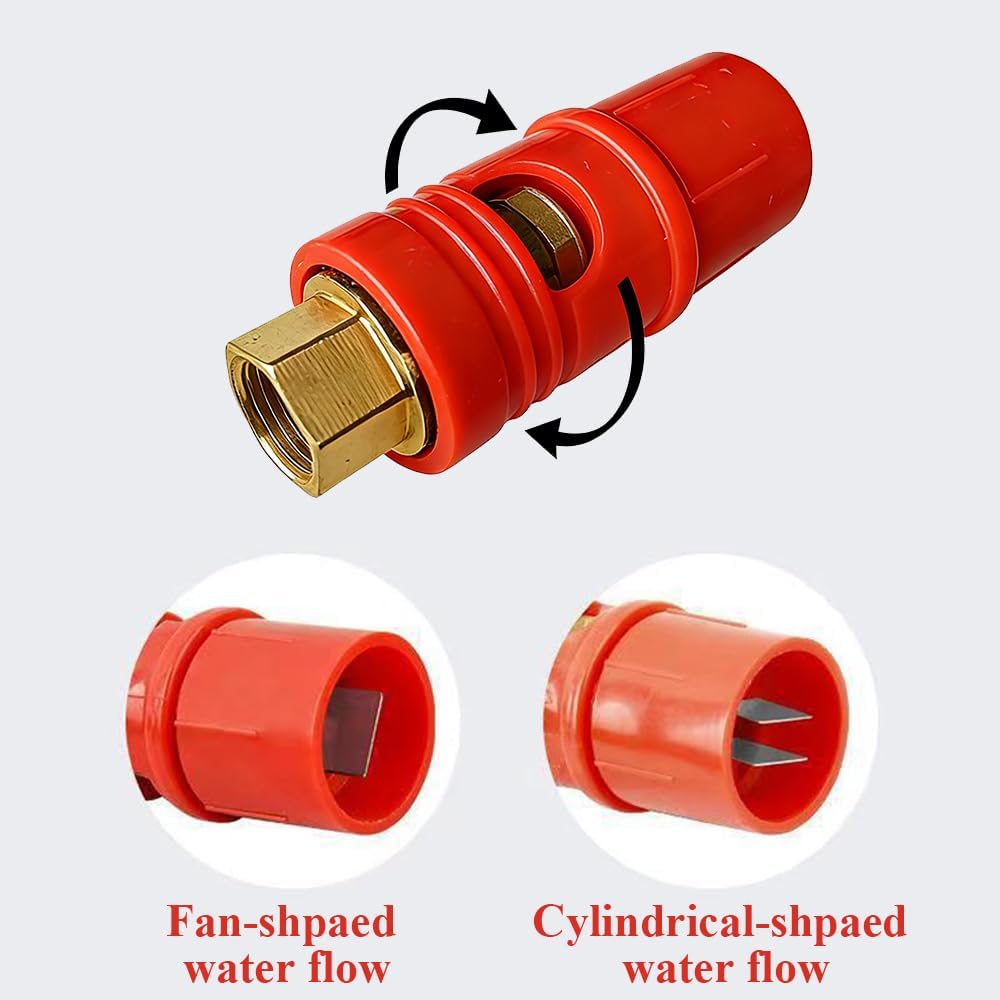 Feature: 【Adjustable Nozzle Design】The water flow pattern can be adjusted simply by rotating the nozzle, allowing flexible switching between fan-shaped and cylindrical-shaped to suit different surfaces and cleaning scenarios. This eliminates the need to change nozzles, enhancing operational continuity and cleaning efficiency.【Secure Connection】Featuring a standard female thread interface, it provides a stable connection with high-pressure cleaning rods, ensuring it remains securely fastened during use. This improves overall operational stability and user experience.【Ceramic Nozzle Core】The nozzle's core components are made of ceramic material, offering good wear resistance and corrosion resistance. It is ideal for frequent use in high-pressure water flow environments. The corrosion resistance of the ceramic material also helps maintain the stability and precision of the water flow pattern.【Multiple Size Options】This adjustable pressure washer nozzle tip offers outlet aperture sizes ranging from 1.2mm(0.047in) to 2.5mm(0.098in). Users can select the appropriate size based on their equipment and water pressure requirements, meeting diverse cleaning tasks.【Wide Application】The nozzle is compatible with common high-pressure cleaning equipment and is suitable for various scenarios, such as household car washing, yard flushing, and exterior wall cleaning. It adapts to standard high-pressure cleaning devices, meeting daily and light commercial cleaning needs.Specification:Name: Adjustable Pressure Washer Nozzle TipMaterial: Plastic, Brass, CeramicColor: RedLength: 8cm / 3.15inFemale Thread: M14*1.5Package Included:5 * Adjustable Pressure Washer Nozzle Tip