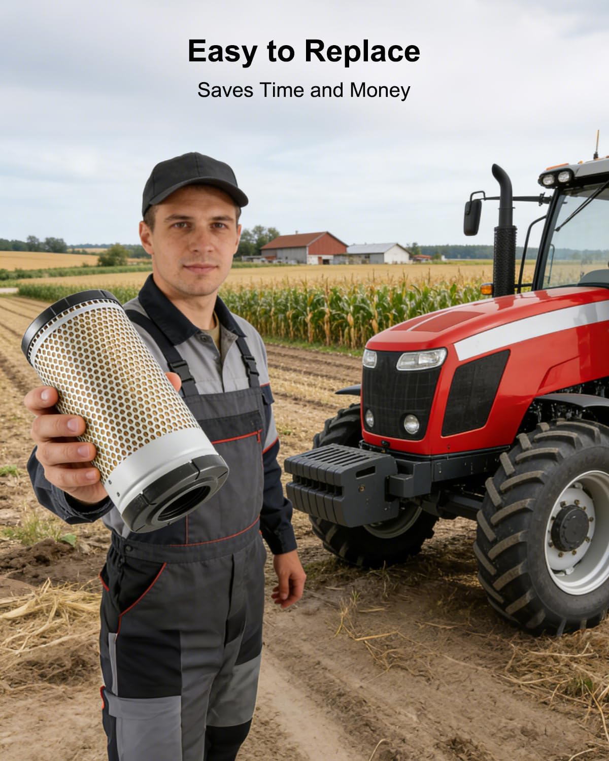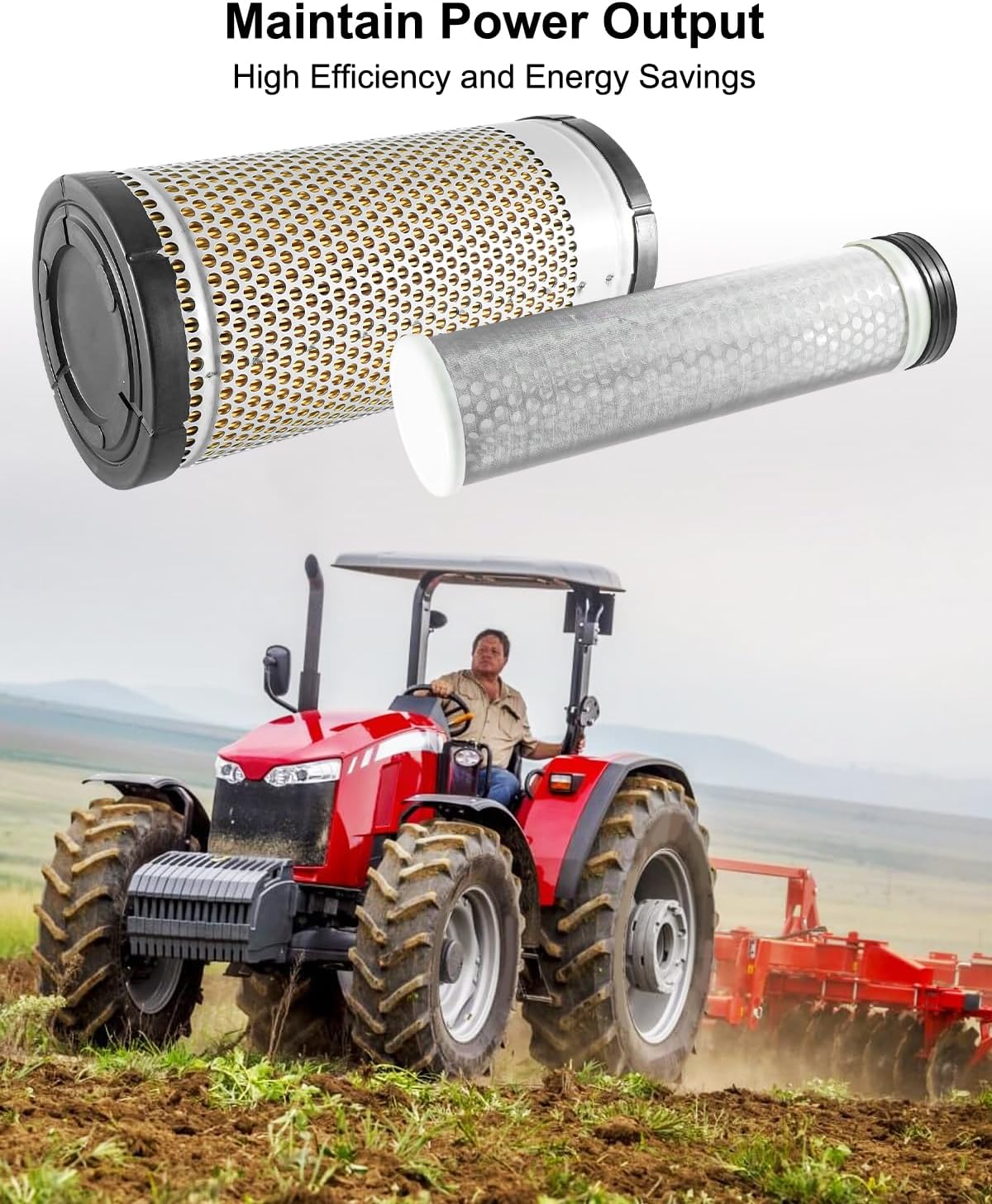 Compatible with Following Models Fit for Massey Ferguson tractor 1736 1742 1749 1754 1758 1759 1750M 1755M 1760M 2705E 2706E 2750E 2760E 2850E 2850M 2855M 2860E 2860M MF1747 Fit for Yanmar SV 60 SV 60-6B VIO 50-6B VIO 57-6A VIO 57 6B VIO 57-6 BCR Replace Part Number Replace 7068069M1 7068070M1 Packaging Includes 1 x Outer filter 1 x Inner filter Features Multi layer filter material effectively intercepts impurities such as dust and sand Helps maintain stable engine power output Using high-quality filter paper combined with high-quality rubber sealing rings, it is not easy to deform or damage