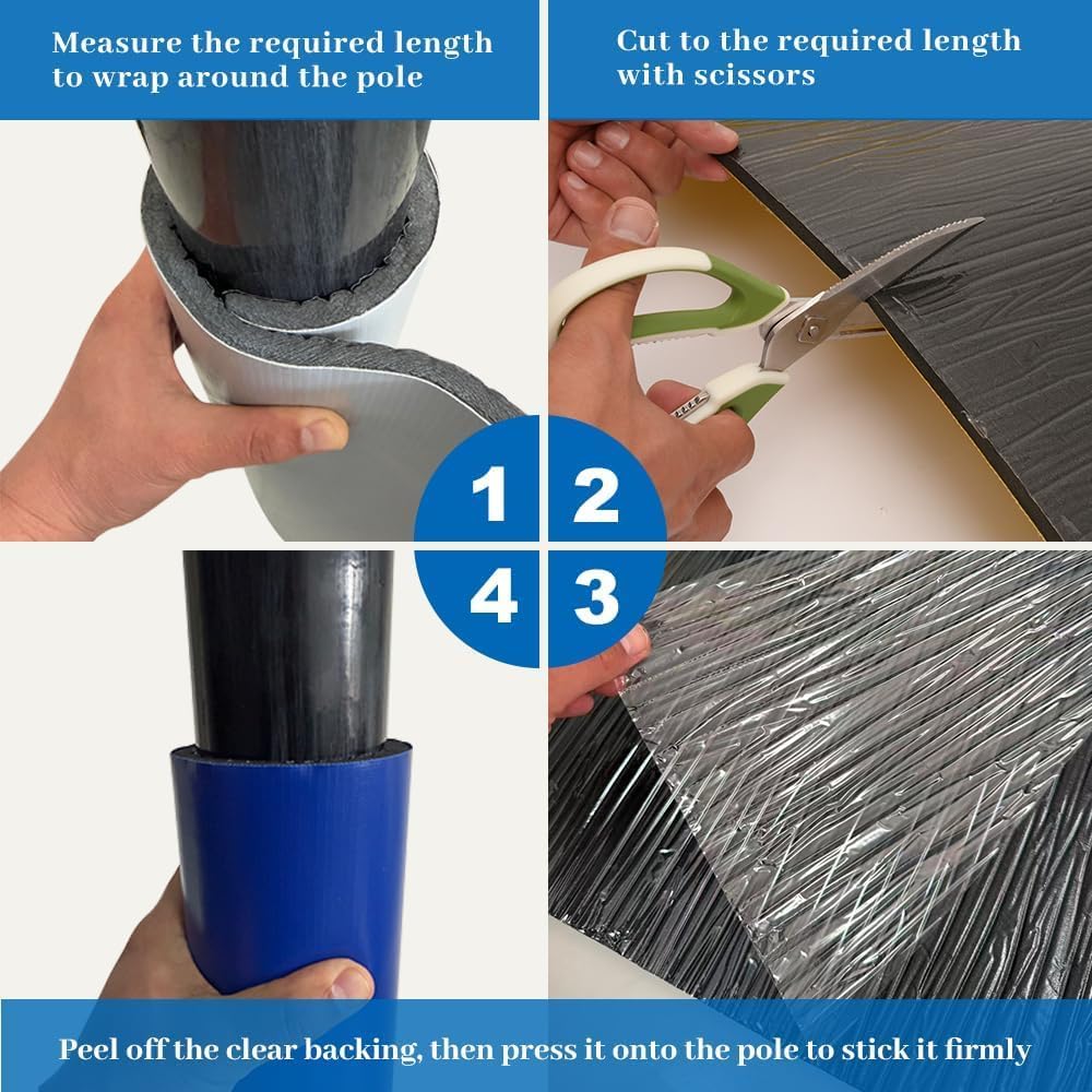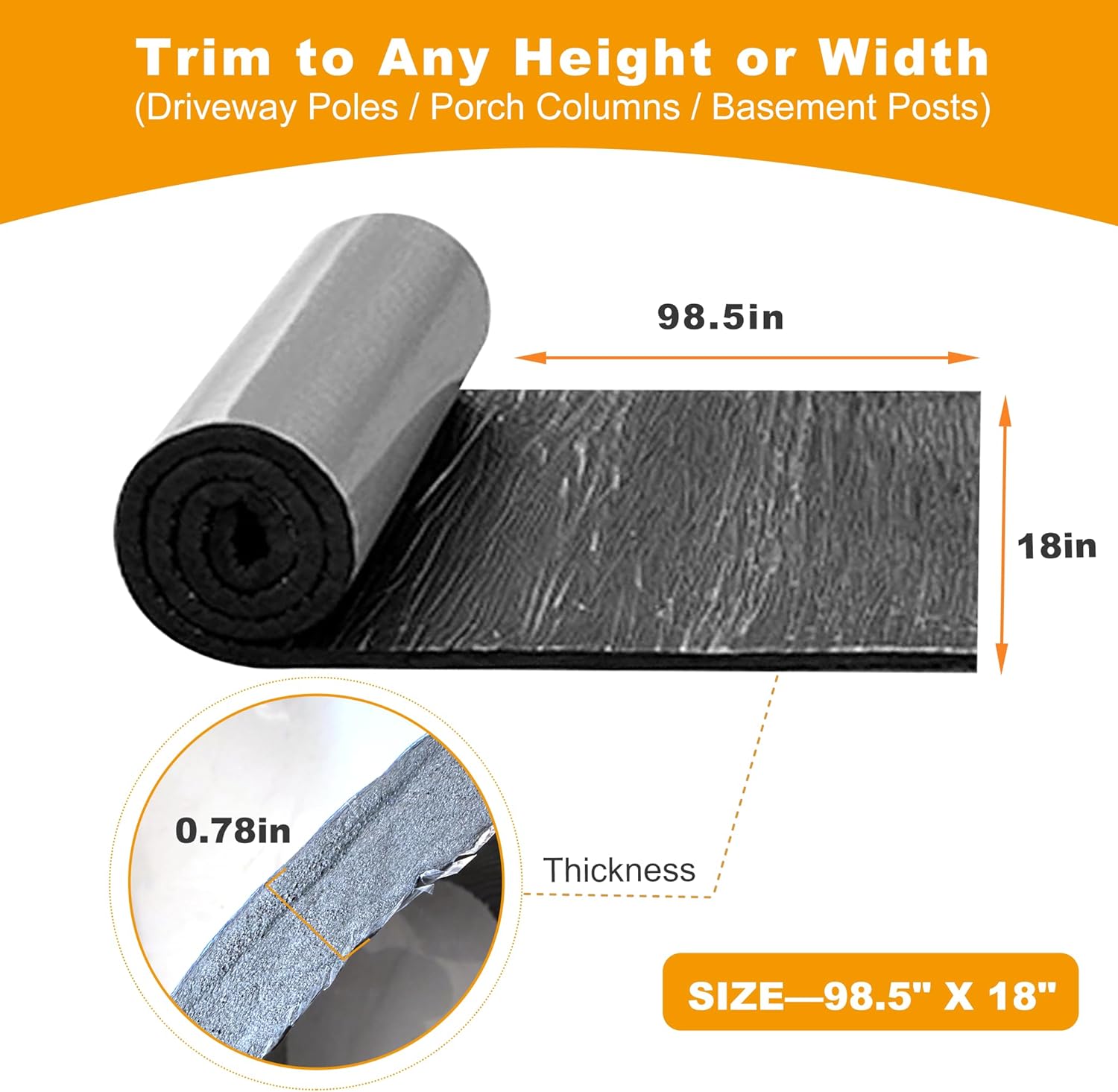 Product Name: Basketball Pole Padding Wrap with 2 Nets Size: 98.5 x 18 inches Thickness: 0.78 inches Key Features: Thick EPE foam absorbs impact to help protect kids, players, and vehicles. Trim-to-fit design allows you to cut the pad to the exact height or width you need. Weatherproof PVC cover withstands sun, rain, and year-round outdoor conditions.