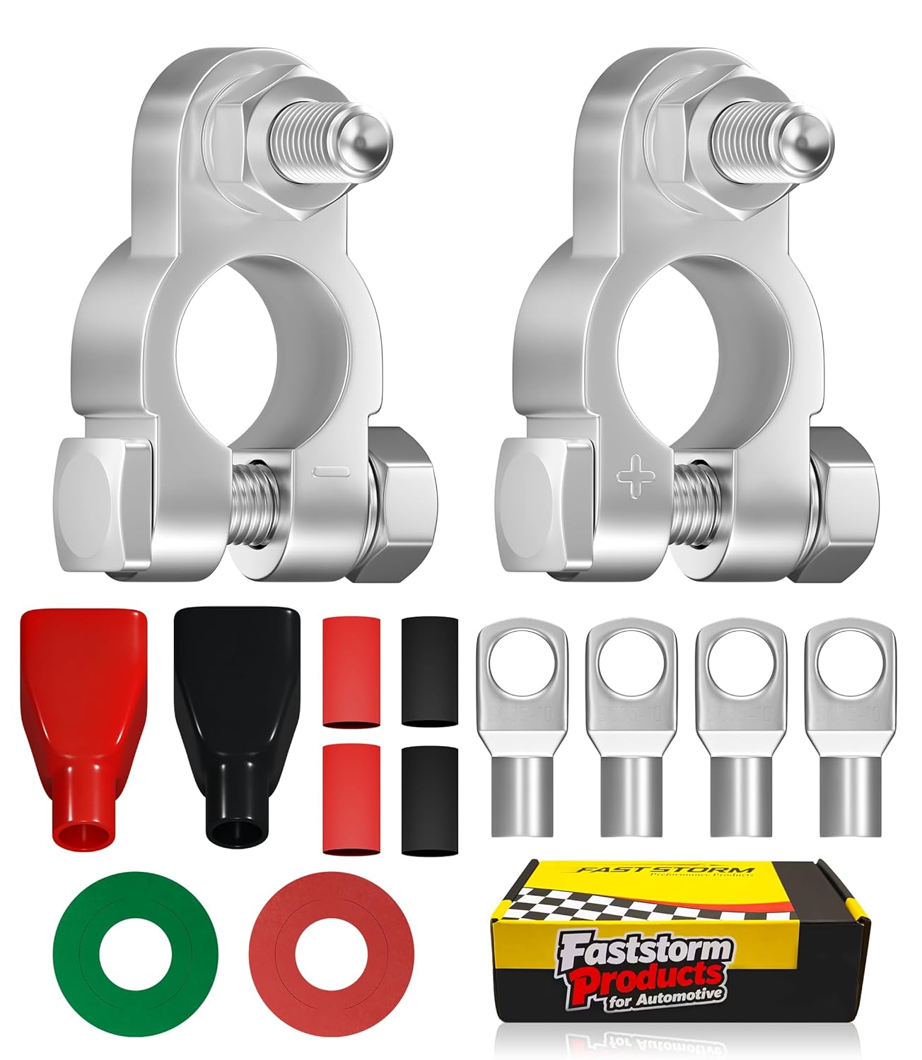 Battery Cable & Terminal Connectors Bundle: 6 AWG Battery Cable 10 Feet (10ft Black+10ft Red) + Heavy Duty Positive Negative Battery Terminals Complete Kit for Auto Marine Solar RV