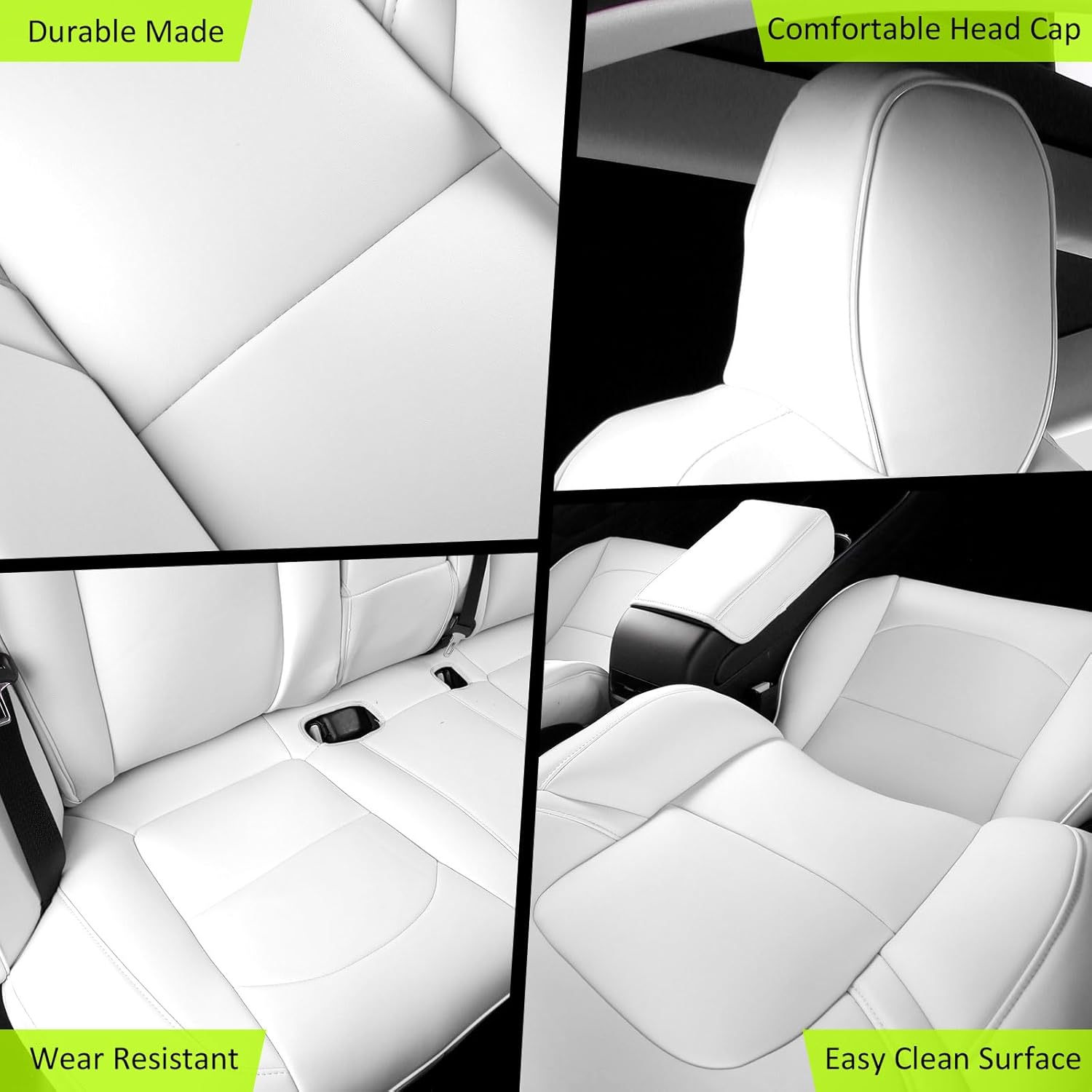 Engineered for drivers who demand both practicality and style, HYPER GLORY seat protectors cover are constructed from rugged, water-resistant leather to combat spills, stains, and abrasions. Whether you're a commuter, a tradesperson with tools, or a pet owner, these covers are your first line of defense. They not only maintain the pristine condition of your original upholstery but also add a touch of sleek, modern elegance to your car, truck, or SUV's cabin. Invest in longevity and drive in confidence. Why Choose HYPER GLORY: Custom-fit and precisely tailored; Durable, long-lasting material; Enhanced comfort & ergonomics; Protects from pet hair & scratches; Easy to install & remove ITEM SPECIFICATIONS: Fitment: Fits 2017-2023 Tesla Model 3 4 door 5-Seats, Not fit 7 Seats Color: White Style: OE Style Material: Silicone Leather Package Includes: 1x Full Set of Seat Covers (10 PCS)