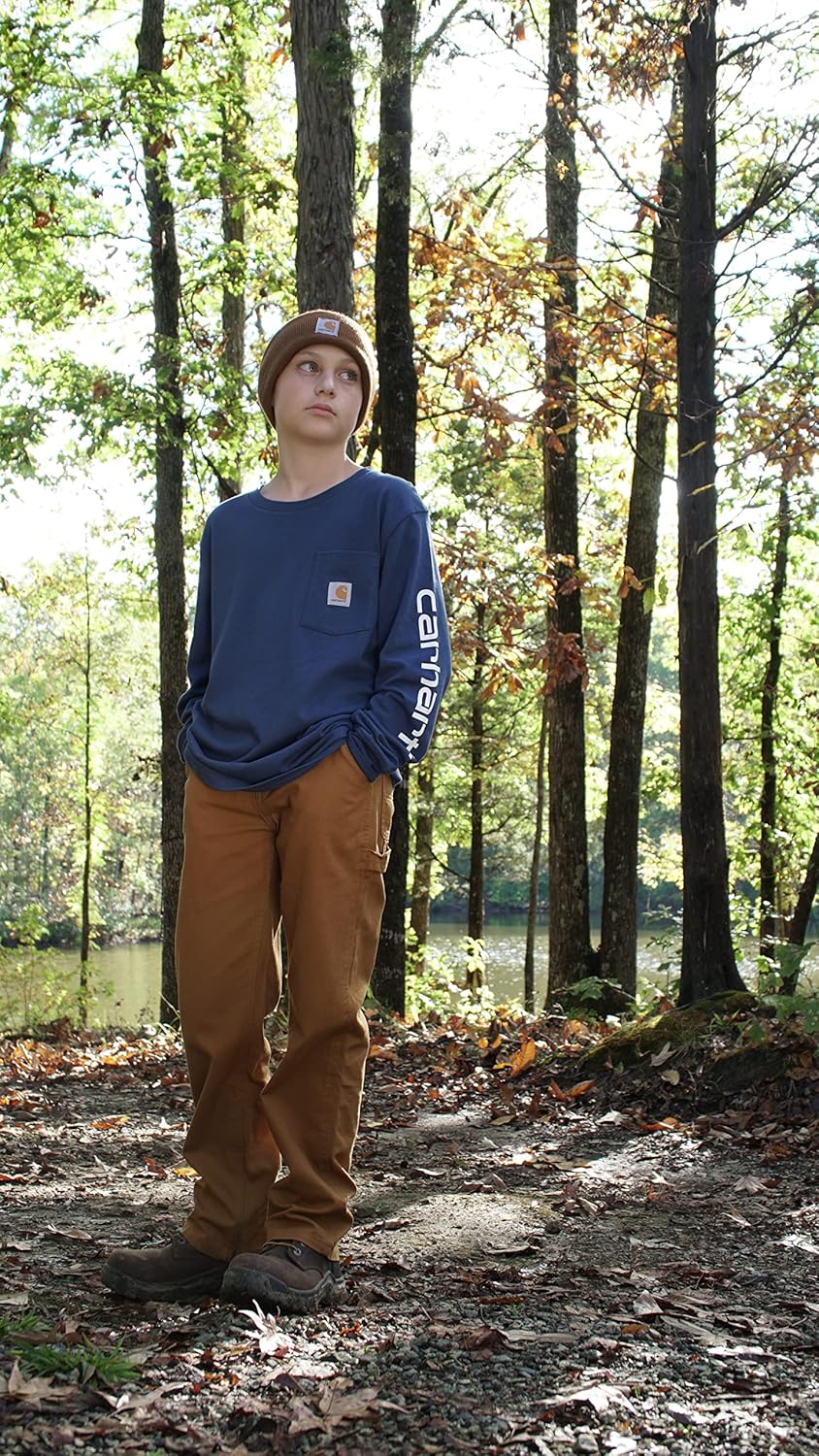 This kids' hat adds warmth to cold days at the park or cool nights around the campfire. It's made of soft, stretchy rib knit with the same classic design as our grown-up version. Carhartt woven label sewn on front.