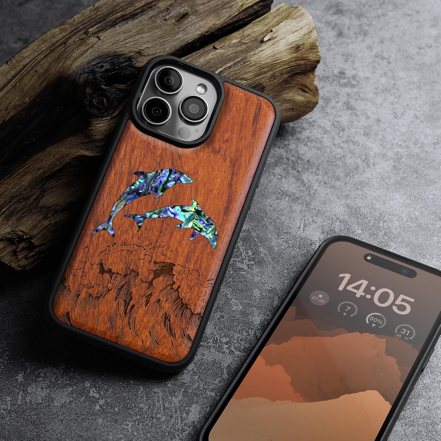 | Additional Features | Natural solid wood back panel and laser engraving, The unique solid wood keeps the palm dry and prevents fingerprints from sticking to the surface of the case, keeping it clean and elegant |