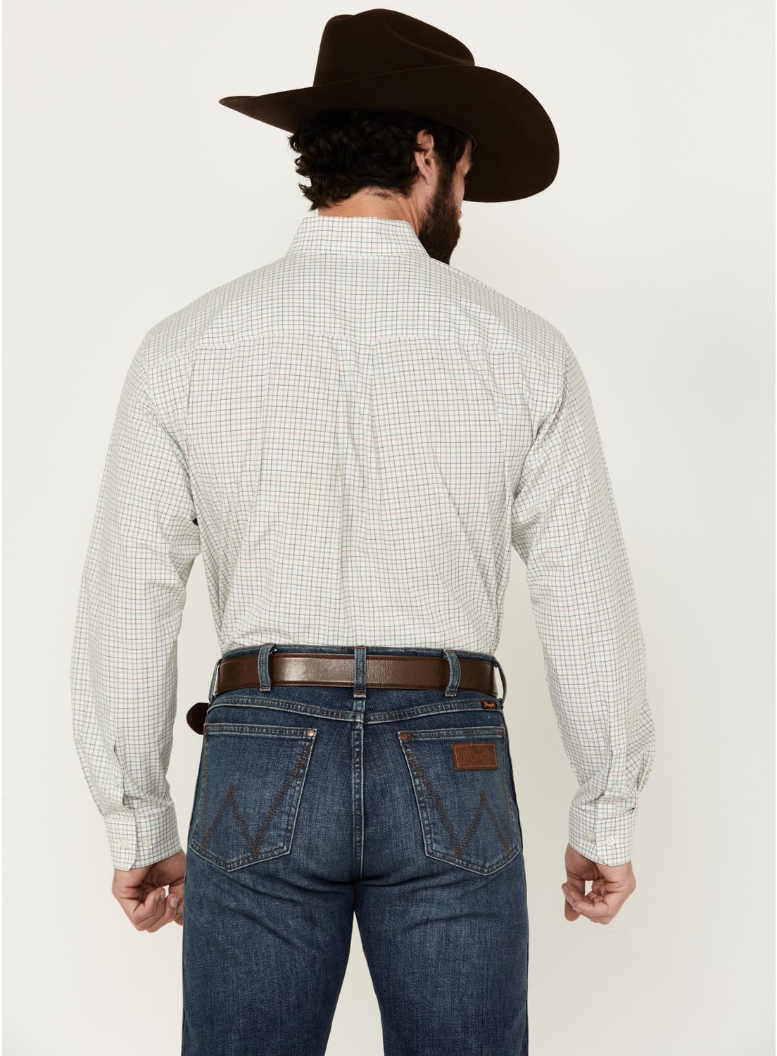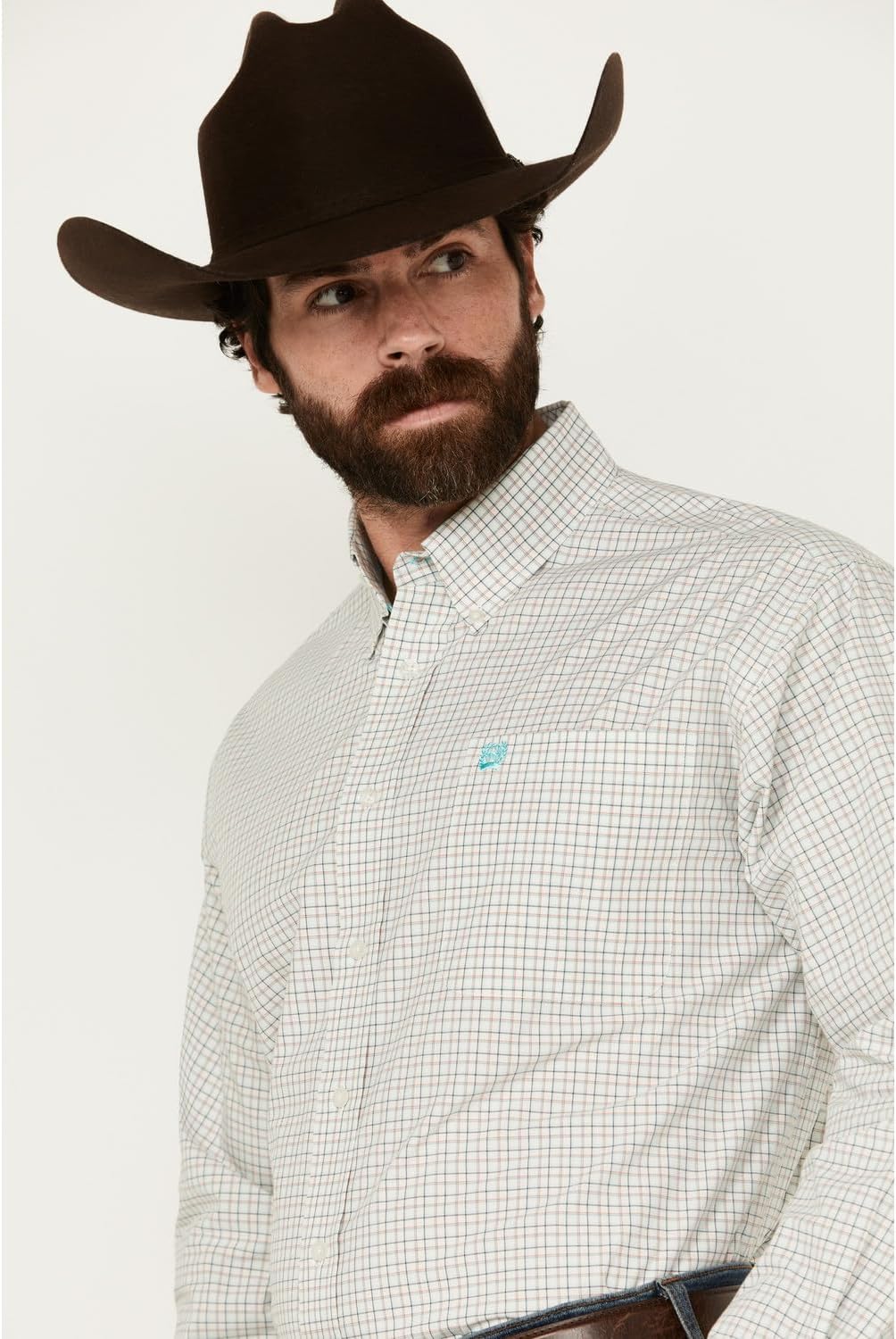 Cinch Cream Printed Cotton Plain Weave Long Sleeve Button Down White Buttons MTW1105746Crisp and classic, that's what this white windowpane plaid by CINCH is all about. Comfortable cotton plain weave construction features an open left front pocket with embroidered logo and white buttons. Pair yours with new denim and boots.