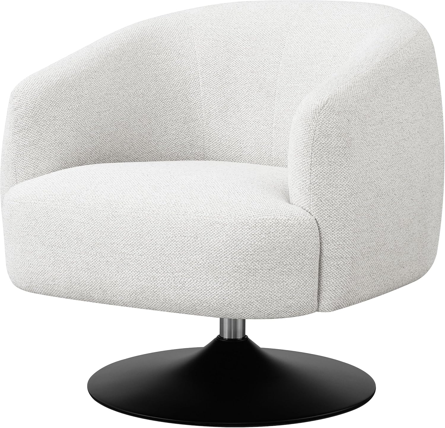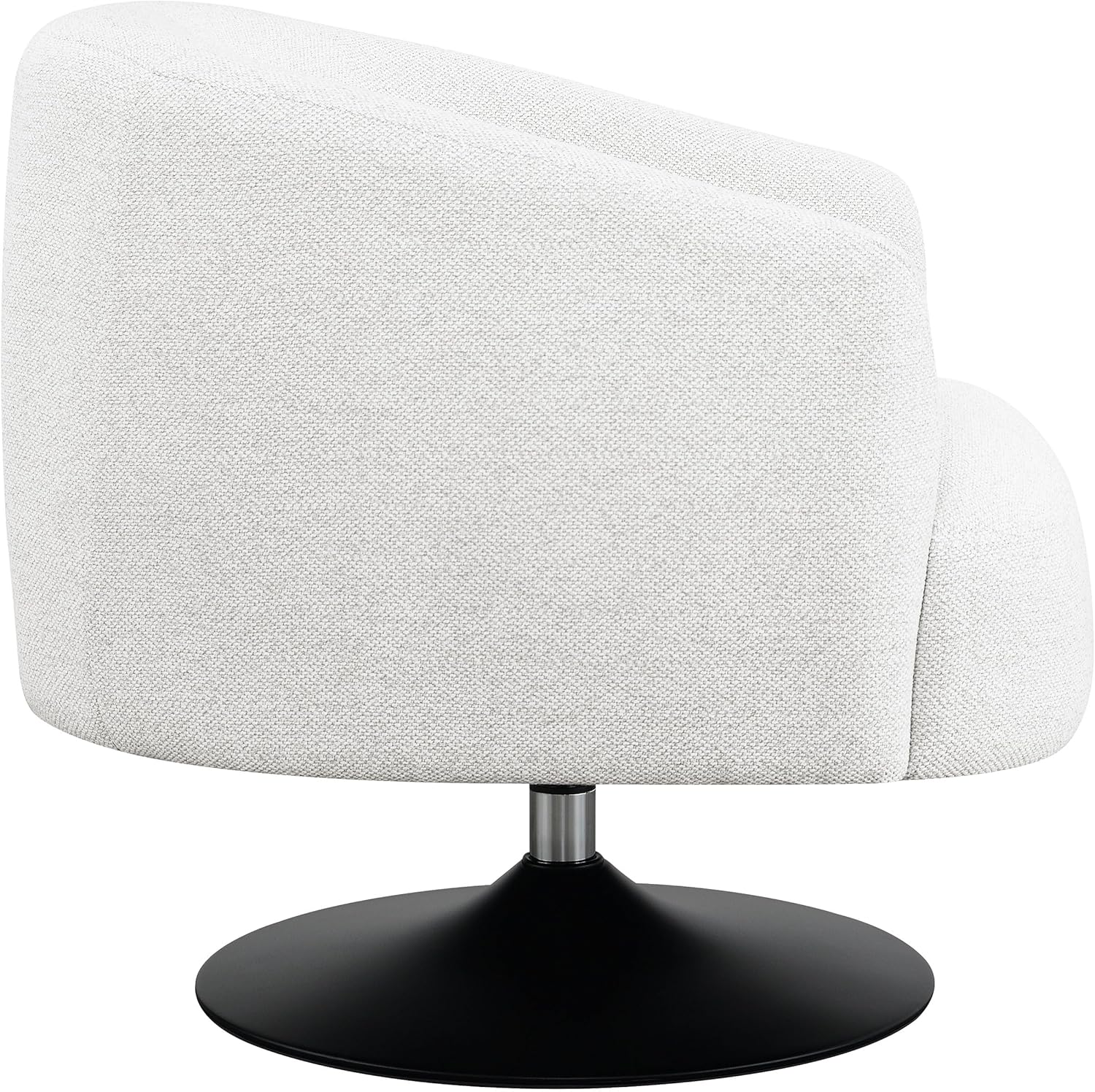 A modern silhouette meets cozy texture in this sculpted boucle barrel chair, designed with a soft boucle fabric, rounded back, and supportive padded back for relaxed sophistication. The smooth 360-degree swivel base and sturdy pedestal base provide flexibility and balance, while the foam cushions deliver lasting comfort. With its sleek tapered off armrests, tight back, and timeless transitional style, this accent chair with arms enhances any living room setup. Crafted with durable wood and metal construction and a rich black finish, this upholstered accent chair is the perfect blend of style, structure, and everyday home furnishing charm. Dimensions: Swivel Chair Seat Dimensions: 18 inches high x 20.5 inches wide x 21.5 inches deep