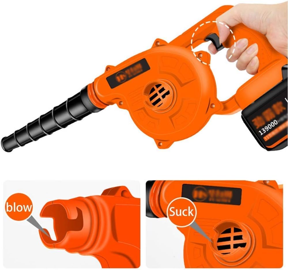 Leaf Blower Collect leaves easily and quickly with a generous vacuum Front wheels and an ergonomic carry harness allow for easy and comfortable operation. Product Name: Electric Blower No-load speed: 0-19000r/min Charging time: about 1.5 hours Air output: 0-3.6m3/min Battery capacity: 99000H; 109000H; 119000H; 139000H Battery voltage: 21V Product weight: 1.9kg (including battery) Body size: length 550 × width 145 × height 240 mm Product features: stepless speed change / blow and suction dual purpose / lithium battery power / strong wind / widely used Power supply type: rechargeable-lithium battery Mode of operation: Handheld Power supply method: DC Switch mode: Self-locking switch Material: PVC + metal Noise level: low noise Motor specifications: high energy copper core motor Whether equipped with vacuum device: Yes packing list 1*Blower 1*Dust bag 1*Adapter 1/2*Lithium Battery 1*Hose 1*Narrow suction nozzle 1*Wide suction nozzle