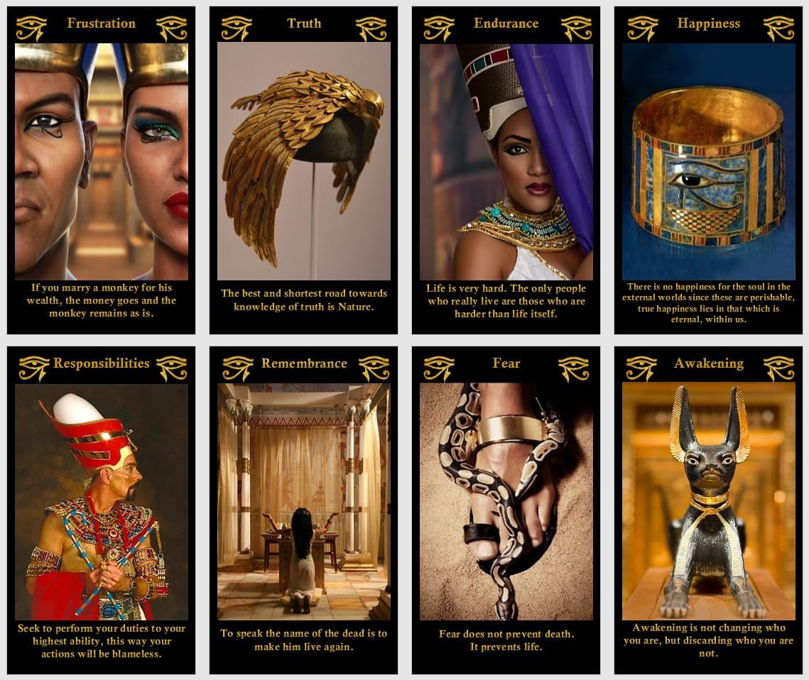 Eye of Horus Oracle – 78-Card Egyptian-Themed Deck of Wisdom, Willpower & Divine Insight Step into the world of ancient Egypt and awaken your inner power with the Eye of Horus Oracle. This 44-card deck channels the timeless energy of Egyptian gods, symbols, and sacred teachings. With messages centered on peace, destiny, judgment, and transformation, the deck invites you to walk the path of divine clarity, strength, and spiritual purpose.