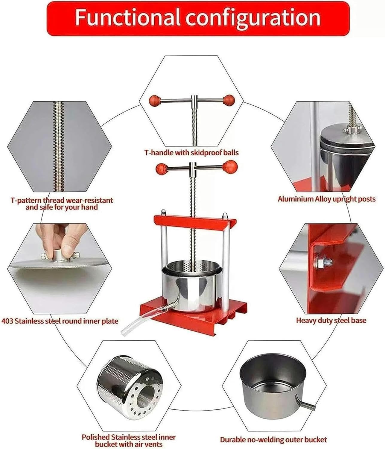 This manual press can arouse its desire for a slow rhythm life. It is a pleasureand can support the use of a lot of time.Help him press more easily.Solid press base and support supportPress Base made of quality steel quality bearing capacitySUPPORT MADE AND STEEL MADE SUPPORTLightweight -weighing correspondingWhat to do with grape crops and other fruits and berries that have matured in their orchard? The best and healthier way is to judge them. Ideal for the home, the garden, the harvest season and the partyA fruit press is not only good to make the usual juice useful in the device to press honey, real jelly or bee waxThese presses are adequate to press the juice of prehribulated grapes, red currants and many other fruits, vegetables and berries.This manual fruit and vegetable press is easy to disassemble for full cleaning.