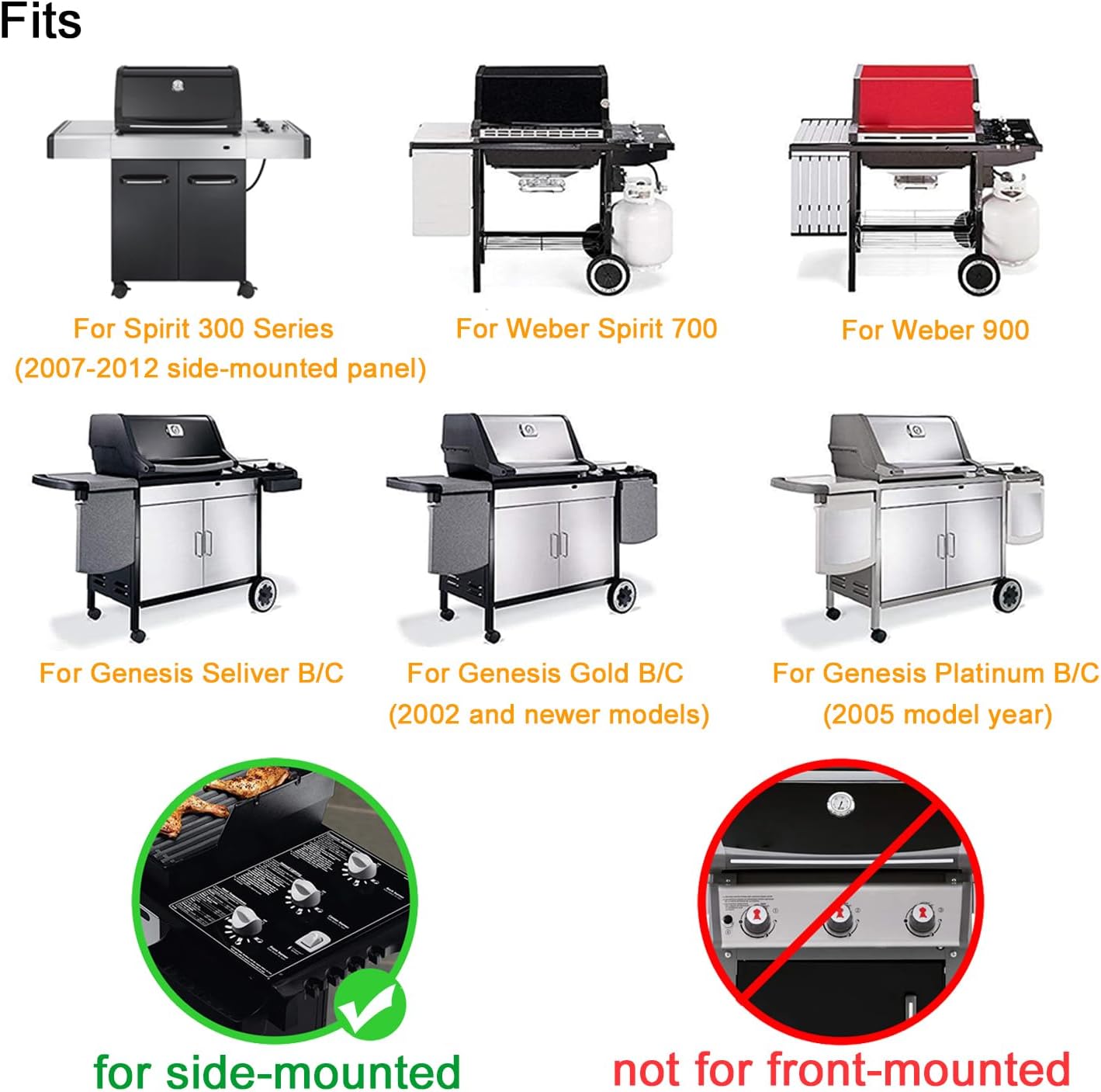 GasSaf replacement parts includes 5 pcs flavorizer bars and 2 pcs grill cooking gratesGasSaf 7536 Flavorizer Bars: 22.5 (L) x 2.3 (W) x 2.3 (H) inches. Packing: A set of 5 pcs. Material: Stainless steel, corrosion resistant, heat resistant materialGasSaf 7525 Grill Grates: 17.4 x 11 3/4 inches for each piece, 17.4 x 23 1/2 inches for 2 pieces. Material: Porcelain-enameled, retains heat superbly, easy to clean, sturdy and durableReplacement Parts for Weber 7536 , 7525, fits for Weber Spirit 300 series (with side-mounted control knobs): Spirit E-310 (2007-2012), Spirit E-320 (2007-2012), Spirit S-310, Spirit S-320 (2007-2012), Spirit Silver E-310. Replacements for Spirit 700, Weber 900Fits for Genesis Silver B, Genesis Silver C, Genesis Gold B (2002-Newer Models), Genesis Gold C (2002-Newer Models), Genesis Platinum B (2005-Newer Models), Genesis Platinum C (2005-Newer ModelsReplacement for Weber: 1100, 211701, 2251001, 2251298, 2251398, 2251411, 2261698, 2261698, 2261698, 2281001, 2281398, 2281411, 2281698, 2281898, 2291001, 2281398, 2281411, 2281699, 2350598, 2351001, 2351598, 2351598, 2351698, 2361001, 2361298, 2361698, 2381698, 2381698, 2381698, 2381698, 2381698, 2381411, 2381698, 2381698, 2391001, 2391398, 2391398, 2391411, 2391411, 2391411, 2391411, 2391698, 2391298, 2391801, 311298, 311801, 321201, 3250698