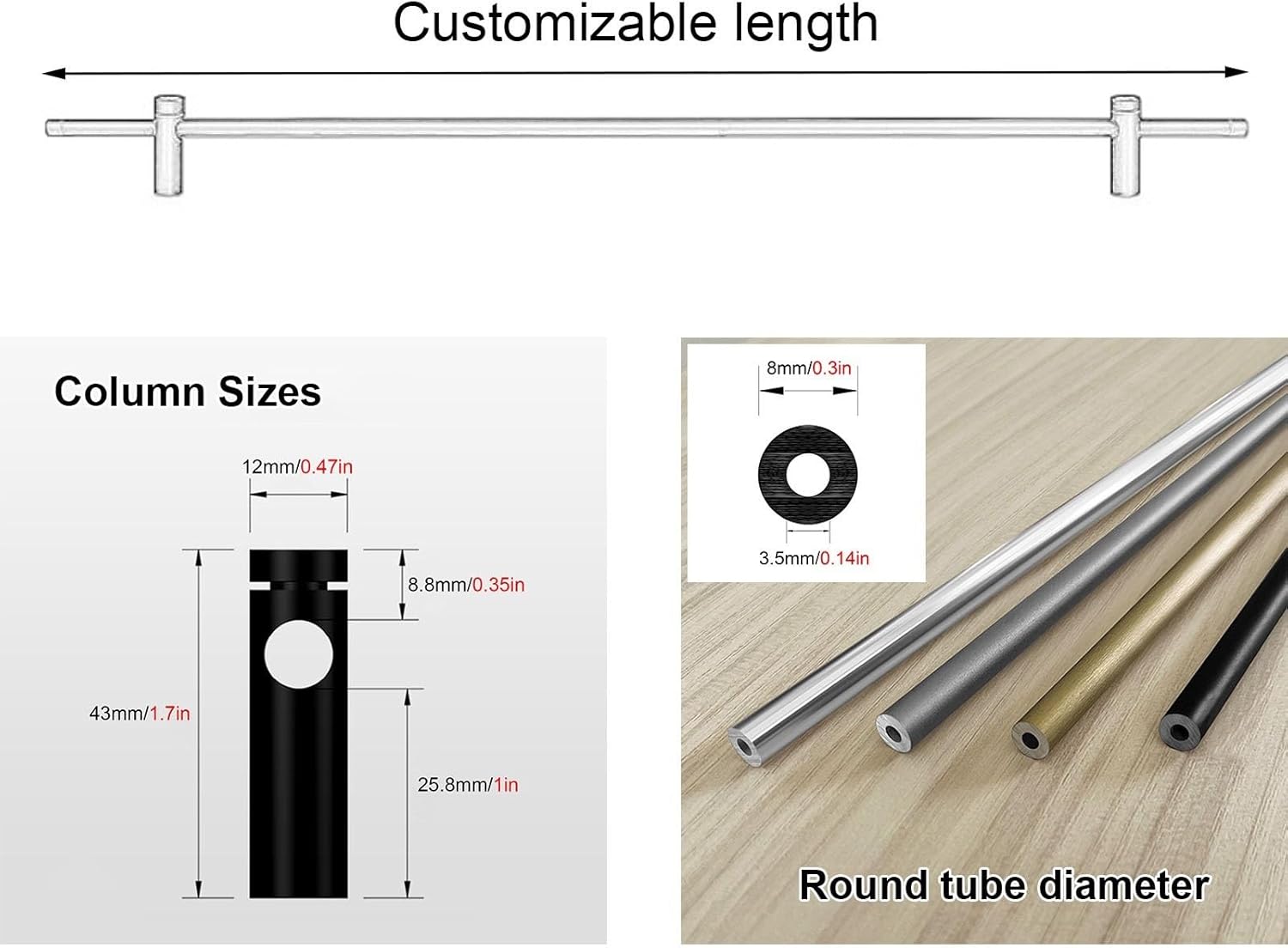 Are you tired of dealing with sliding books and a cluttered space? Our customizable shelf rail set is the perfect solution for organizing your shelves while enhancing their appearance. Designed specifically for smaller shelves, it provides a stylish yet functional way to showcase your favorite items without overwhelming the display. Crafted from durable aluminum alloy, this shelf rail offers stability and reliability, ensuring that your belongings stay securely in place. With a customizable pole length and a diameter of 8mm, you can adapt it to fit virtually any cabinet or shelving unit, making it ideal for bookshelves, wardrobes, shoe cabinets, and display units. Installation is a breeze with our straightforward steps, allowing you to effortlessly mount the rail and eliminate clutter in no time. The thoughtful design effectively prevents items from slipping or toppling, giving you peace of mind when displaying books, decorations, or other essentials. Keep in mind that the installation requires approximately 5 cm of space at each end of the rod for optimal fitting. Please note that slight measurement variations may occur due to manual measurements, and lighting conditions can affect the appearance of colors in the photos. Transform your living space with our shelf rail set, designed to bring order to your shelves while allowing your treasured items to shine. If you have any questions or need assistance, feel free to reach out to us.
