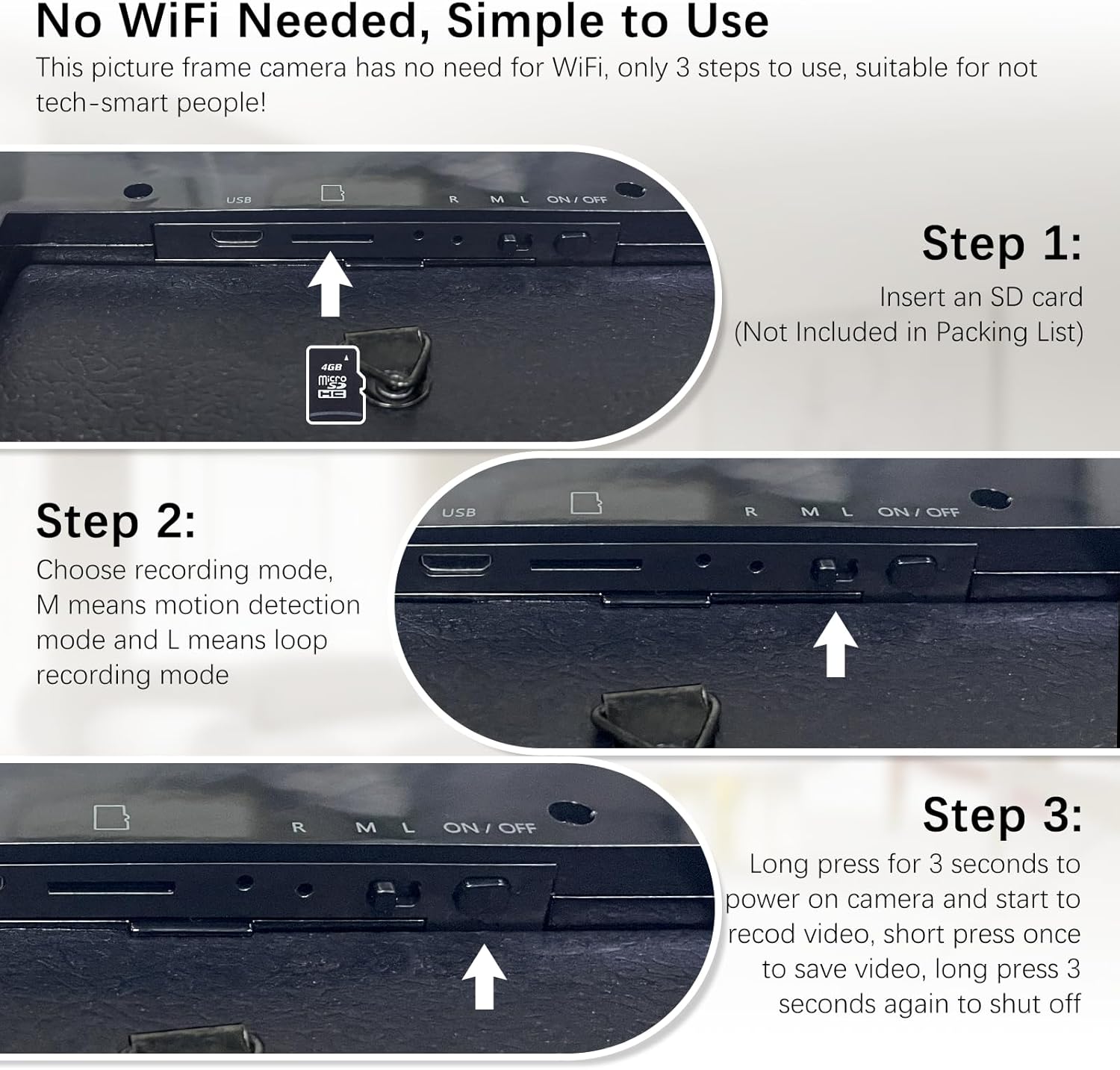 | Other Special Features of the Product | Loop Recording Mode, Motion Detection Mode, No WiFi Required |