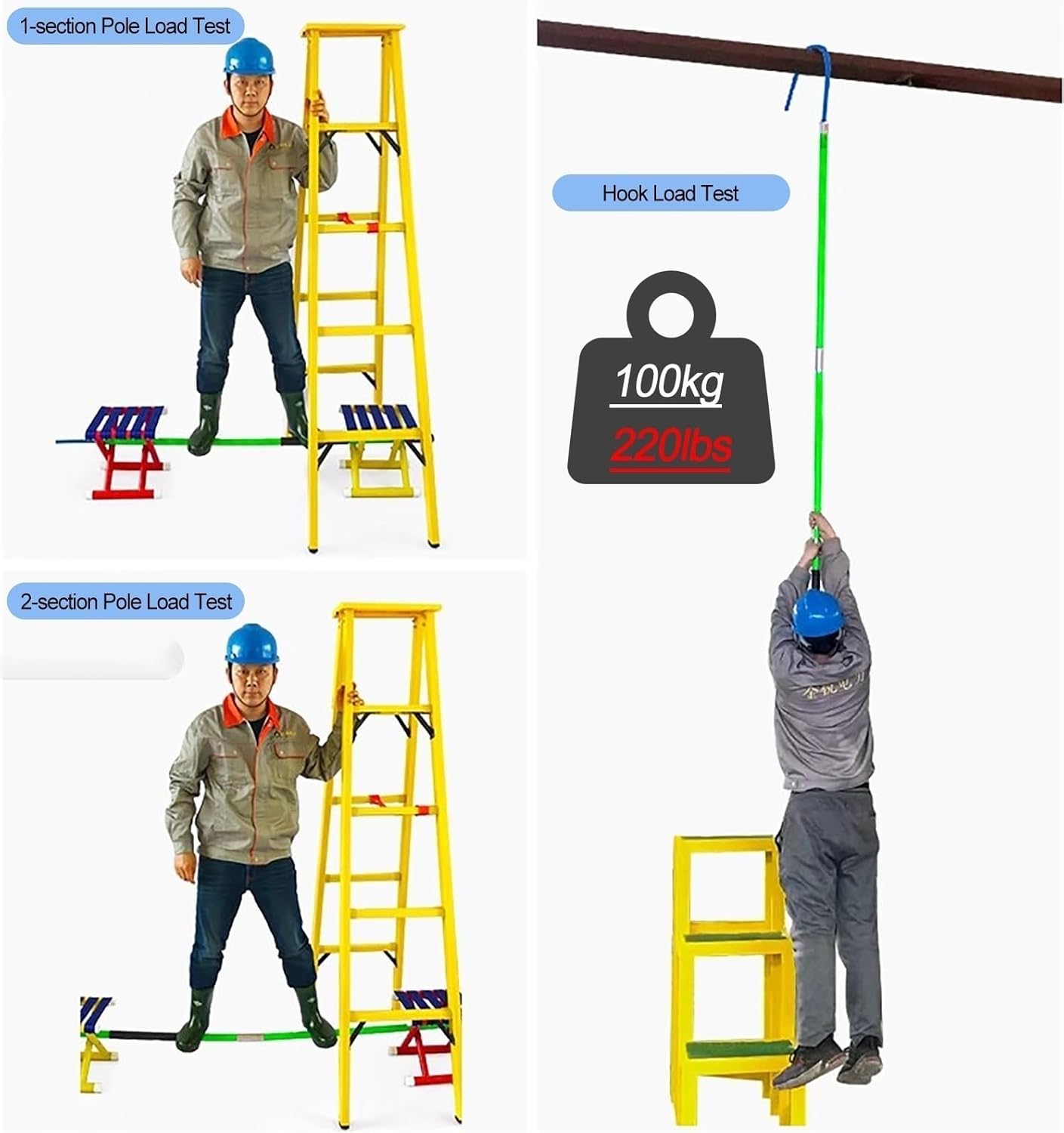 Specification: → Material: Fibreglass (Epoxy)→ Load Capacity: 100kg/220lbs→ Colors: Yellow, Green→ Pole Diameter: 3.2cm/1.2in→ Hook Opening: 42cm/16.5in→- Hook Diameter: 16mm/0.6in→ Features: Insulated & Safe Lightweight & PortableLength:1m/.3ft--1 section--withstand voltage of 10kV.1.5m/.9ft--1 section--withstand voltage of 35kV.2m/6.5ft--2 sections--withstand voltage of 35kV.3m/9.8ft--2 sections--withstand voltage of 110kV.→ How to use: Pulling the body waist, armpits and other easy to pull parts of the bodyFeatures:Non-slip grip for comfortable operation.Strong load-bearing, the hook is not easy to fall.Provides safety against electric shock and other dangers.Easy storage, making it convenient to use in various situations.Usage: Auto Maintenance, Electric Power, Factory, Home, etc.Insulated handle provides reinforced protection and effective insulation for safer use.The build quality is excellent, with sturdy materials that ensure durability and reliability.The hook is made of alloy material with a diameter of 420mm covered with a plastic insulating layer, which is not easy to deform.Package Include: - Insulated Rescue Hook x 1Note:- It is best to wear insulated gloves when using it.- Minor errors can be 1cm error due to different batches and manual measurements. Thank you for your understanding.- There may be chromatic aberration due to the difference between the recording lamp and the display. Please refer to the actual product.