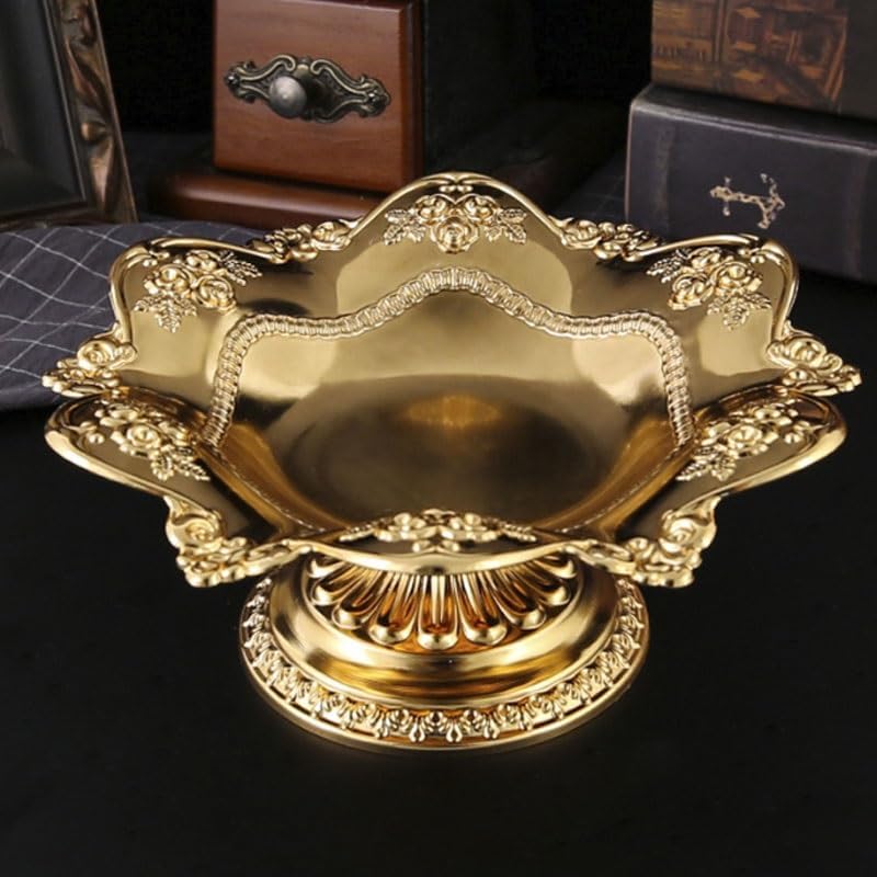 Product: Fruit plateMaterial: AlloySize: As shownColor: As shownScope of application: families, hotels, coffee shops, etcPackaging: YesTarget users: Candies, fruits and dried fruitsPackaging contents: Fruit platter (other items excluded)Note: Due to manual measurement, please allow an error of 2 to 3 centimeters.Due to lighting conditions, the actual color may slightly differ from the image.