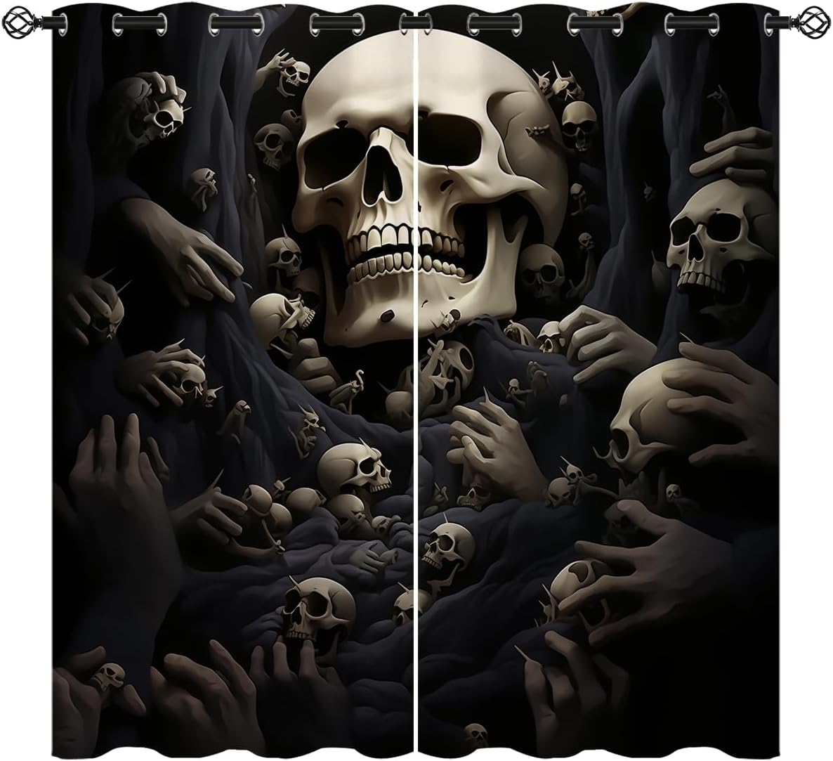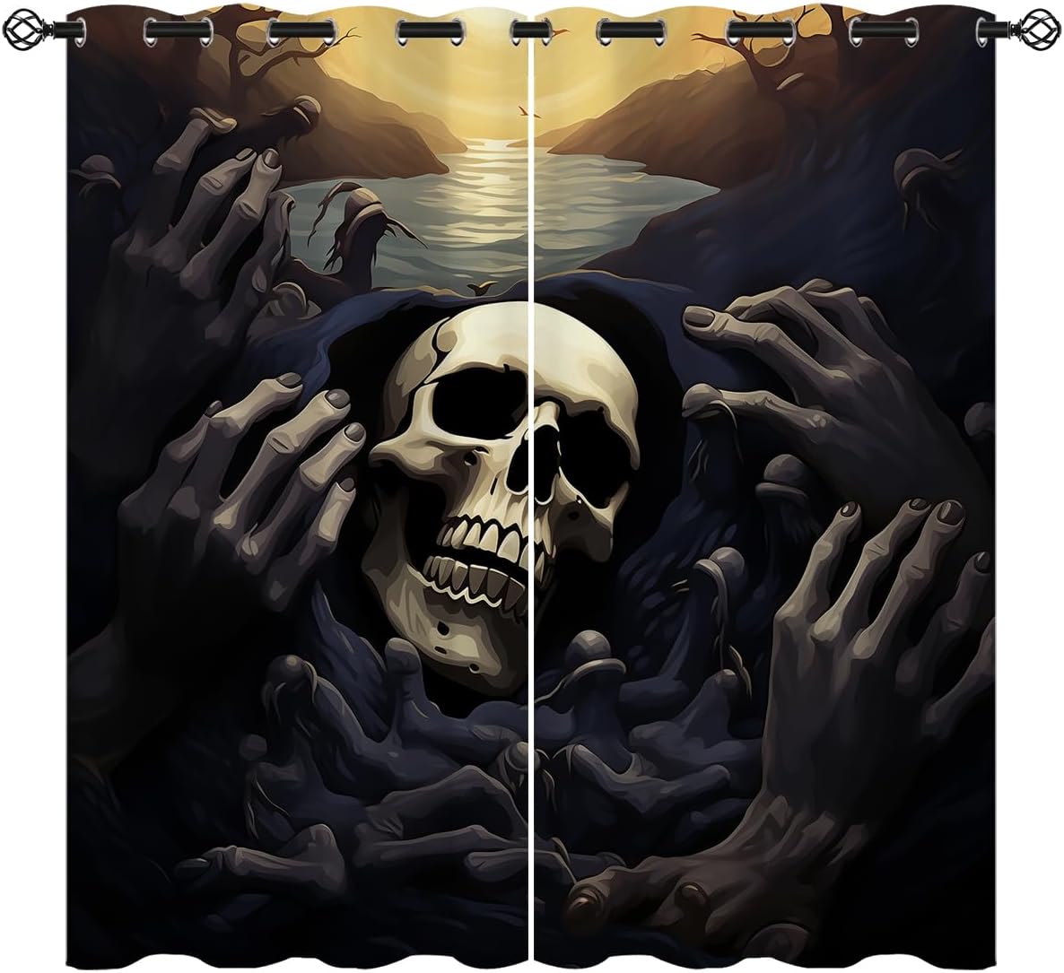 These print curtains are perfect for Living room, bedroom, kids room, kitchen, yard, patio, parlor, sliding door with Horror Skull,Day of The Dead Spooky Halloween pattern.- Unique design:· Save energy costs by insulating against heat and cold.· Reduce noises from busy streets and high-traffic areas.· Protect furniture from sun damage and fading.· Provides complete privacy when needed· Perfect for any bedroom, office kids room and living room.- Package Included:· Blackout window curtains 2 Pcs set ( two panels).- Material:· Our Blackout Curtain Liners are crafted from a durable soft and thick triple weaved blackout fabric which can block out sunlight and UV rays. The darker color of the fabric, the more light it can block.- Easy Care Instructions:· Machine washable in cold water· Do not bleach.· tumble dry on low· low temperature ironing- Notes:· For your curtains to be more perfect, please choose a size 5-10 Inch larger than the actual window width.· here may be slight differences in colors on different displays. If you have any questions about the product, please feel free to contact us.