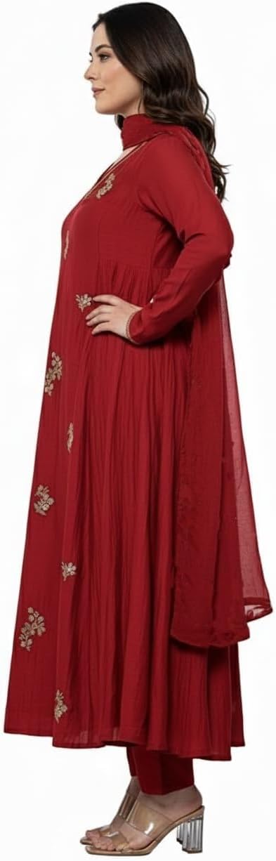 Indian Anarkali Suit Set for Women Ethnic Embroidered Long Flared Kurti with Dupatta & Pants