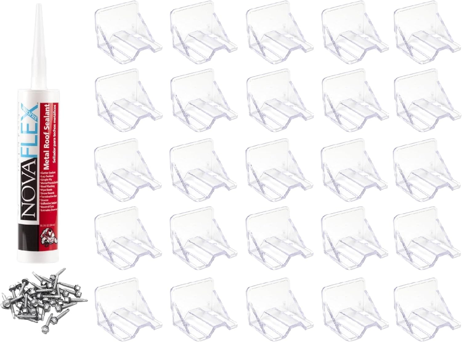 Multiple Kit types available. Select the correct installation kit needed. Our JSP Brand Clear Reversible Teton Mini Roof Snow and Ice guards are designed to keep snow and ice off metal roofs. These strong and durable guards will protect your property, pets and people from injury and liability claims from injury. Please use recommended silicone sealant around the base of the guard to provide a watertight leak free seal. Prevents large sections of sliding snow and ice. Teton Mini Snow Guards with or without Installation Kit Made of heavy-duty, strong, durable UV stable polycarbonate material Prevents damages and injuries from sliding snow and ice buildup. Protect your property, people, and pets from damage and injury. Perfect for both DIY homeowners and professional commercial roofers Reversible Mounting Faces – Flat Face or Channel Face Dual Forward-facing plate design Multiple easy installation methods - Use either adhesive or mechanically fastening applications. Has 2 starter point holes on each face front for screw mounting, which still allows for a dry, leak-free protection to your roof. Holds 4200 lbs with mechanical attachment Holds 500 lbs with adhesive attachment Made in USA Multiple Kits Options: 1. (25) Snow Guards Only 2. (25) Snow Guards & (1) tube of SureBond SB-190 Adhesive 3. (25) Snow Guards & (50) Metal 1.5" Screws & (1) tube of Sealant 4. (25) Snow Guards & (50) Wood 2" Screws & (1) tube of Sealant Product Specifications: Style: Mini Reversible Flat or Channel Face Material: 100% Pure Virgin UV Stable Polycarbonate Manufacturer: JSP Manufacturing Color: Clear Measures Approximately: see images Length: 2.5 inches Width: 3 inches Height: 2.5 inches Channel Width: 1.375 inches Channel Height: 0.50 inches Fits: Designed for use on metal panels with 3” Panel Flat. They fit the most popular 36” R-panels with 12” rib spacing or 9” rib spacing. Will straddle minor ribs that measure less than 1.375" wide and 0.50 inches high NOT recommended for placement only in isolated areas such as doorways, vents, chimneys, and partial roof sections. Installation Methods: Adhesive Fasten – We recommend using SureBond SB-190 adhesive with our snow guards. The installation for adhesive requires 28 days or (672 Hours) at 50 Degrees (F) or above to achieve full cure. Temperatures below 40 Degrees (F) will delay cure time, until temperatures reach 50 Degrees (F) or above to completely cure. Spring and Summer is the best time to install adhesive mounted snow guards to insure 100% cure. Do Not use for Copper or lead coated Copper Roofs Tip: It is recommended to clean the roof surface with isopropyl alcohol or panel wipes before installation. Please Note: *Each application is unique per snow guard type, please note one tube of adhesive should install approximately 6 to 8 large snow guards or approximately 10 to 20 mini snow guards, depending on the size of their surface design and bonding area. **The recommended adhesive has a release factor that will not cause metal panel damage or roof leaks, so in the event of a release and are loosened or knocked off, they can be remounted to the same spot. Mechanically Fasten – We recommend using (#14 Roofing screw) 1.5" Metal Purlin screws or 2" Self Tapping Wood Purlin Screws with a sealant around guard base and screw holes to provide a watertight and leak free seal. Please Note: Each application is unique per snow guard type, please note one tube of sealant should install approximately 6 to 8 large snow guards or approximately 10 to 20 mini snow guards, depending on their design shape and size.