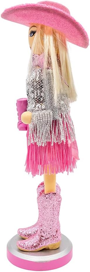Embrace the spirited charm of the Wild West with Kurt Adler's captivating 12" Honky Tonk Cowgirl Nutcracker! This delightful nutcracker features a stunning cowgirl design, complete with a vibrant outfit, cowboy hat, and classic Western accessories, embodying the essence of country life and honky tonk culture. Crafted with meticulous attention to detail, this nutcracker stands tall and proud, making it a striking centerpiece for your holiday decor. Its whimsical expression and colorful attire bring a playful touch to your festive display, perfect for adding a unique flair to your Christmas tree or mantel. Ideal for lovers of country music and Western themes, this nutcracker also makes a fantastic gift for friends and family who appreciate festive and fun holiday decorations.