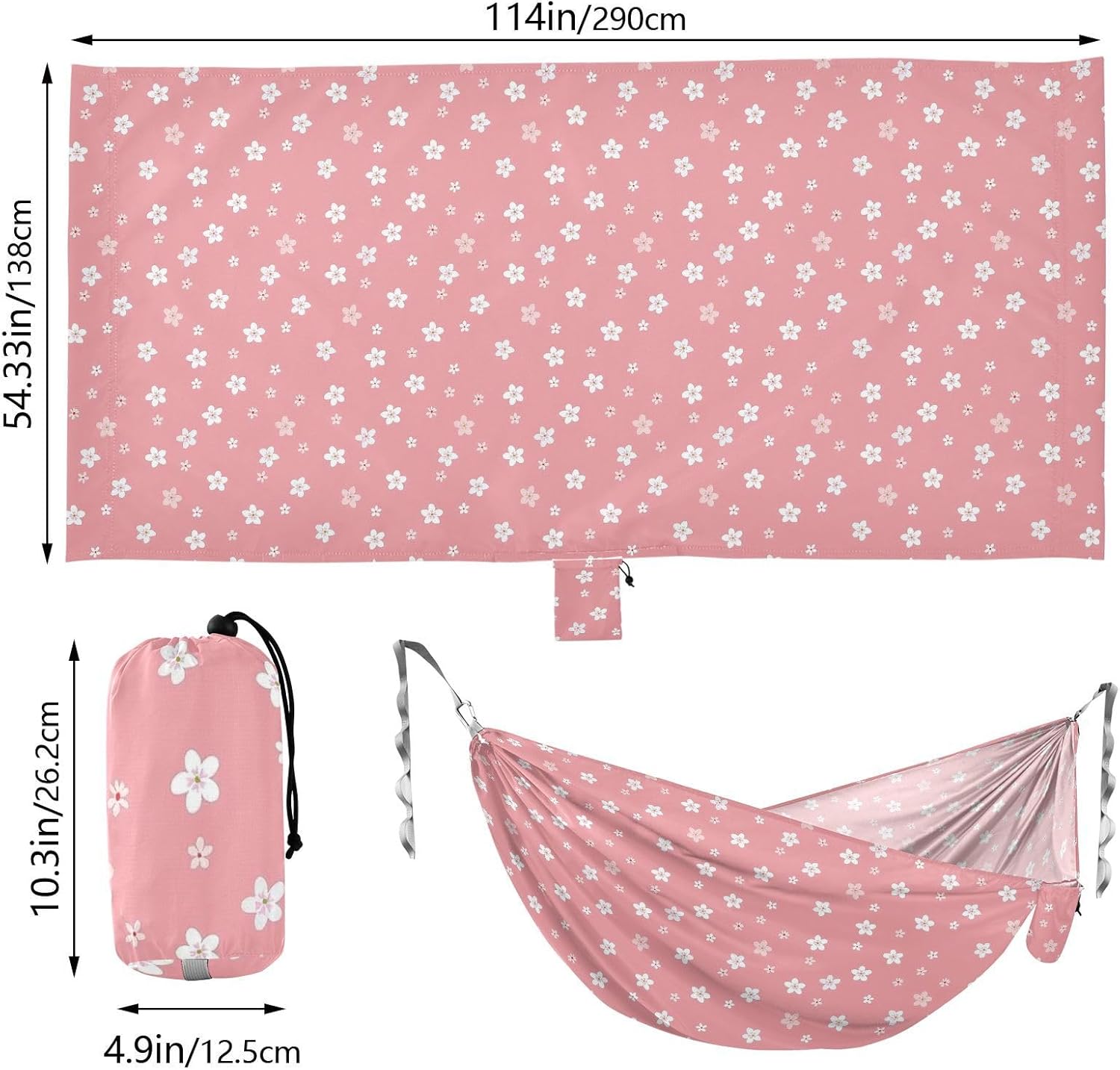 Size: 114 x 54.33 inches /290cm ×138 cm. This single Swing Hammock is spacious enough to accommodate 1 adult and 1 child, allowing you to enjoy quality time with your kids. It can bear a load of 330LB/150KG.High Load-bearing Capacity: This Hanging Hammock fabric is made of high-strength and breathable 210T polyester taffeta. The climbing buckle is made of aluminum alloy. Sturdy, three belt is made of high-density 600D imitation nylon webbing, which has excellent wear resistance, tear resistance and strong load-bearing capacity.Design: This hammock's webbing is equipped with multiple adjustable rings, making it convenient for users to adjust the height and position of three Hammock according to the actual situation. There are also hanging pockets along the edge of the hammock, which can be used to store personal items.Applicable Scenarios: Swing Hammock is suitable for various outdoor activities, such as camping, traveling, hiking, etc.Family Gathering: When having an outdoor outing with friends and family, this Swing Hammock can be a very interesting new experience. Assembling the hammock and trying it out are great opportunities to enhanche family atmosphere. The same is true of couples and newlyweds.