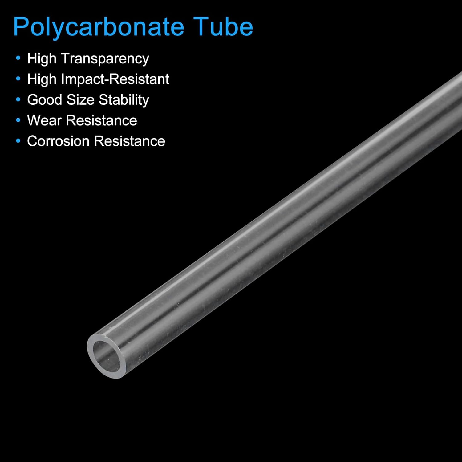 What is this?With high transparency, the transparent PC (polycarbonate) tube has strong light transmission when used in lamps and lanterns. When it is used for liquid transportation, the flow of liquid in the tube can also be clearly seen. Transparent PC tube is widely used for lamps and lanterns, water cooling system, building materials, handicrafts, DIY, and so on.What will I get?In the package of: 1pcs x Rigid Round Pipe; Length: 14"(350mm); Inner Diameter: 0.16-inch(4mm); Outer Diameter: 1/4-inch(6mm); Thickness: 1mm/0.04 inchAre there any advantages of the product?Round hard tube made in polycarbonate material, durable and long service life; High transparency, high light transmission; Rigid round tubing has very high impact resistance.How to use it?You can use the professional tool to cut the tube length to meet your project requirement.What should I notice?Tips: Please check the tube's inner diameter and outer diameter before ordering.