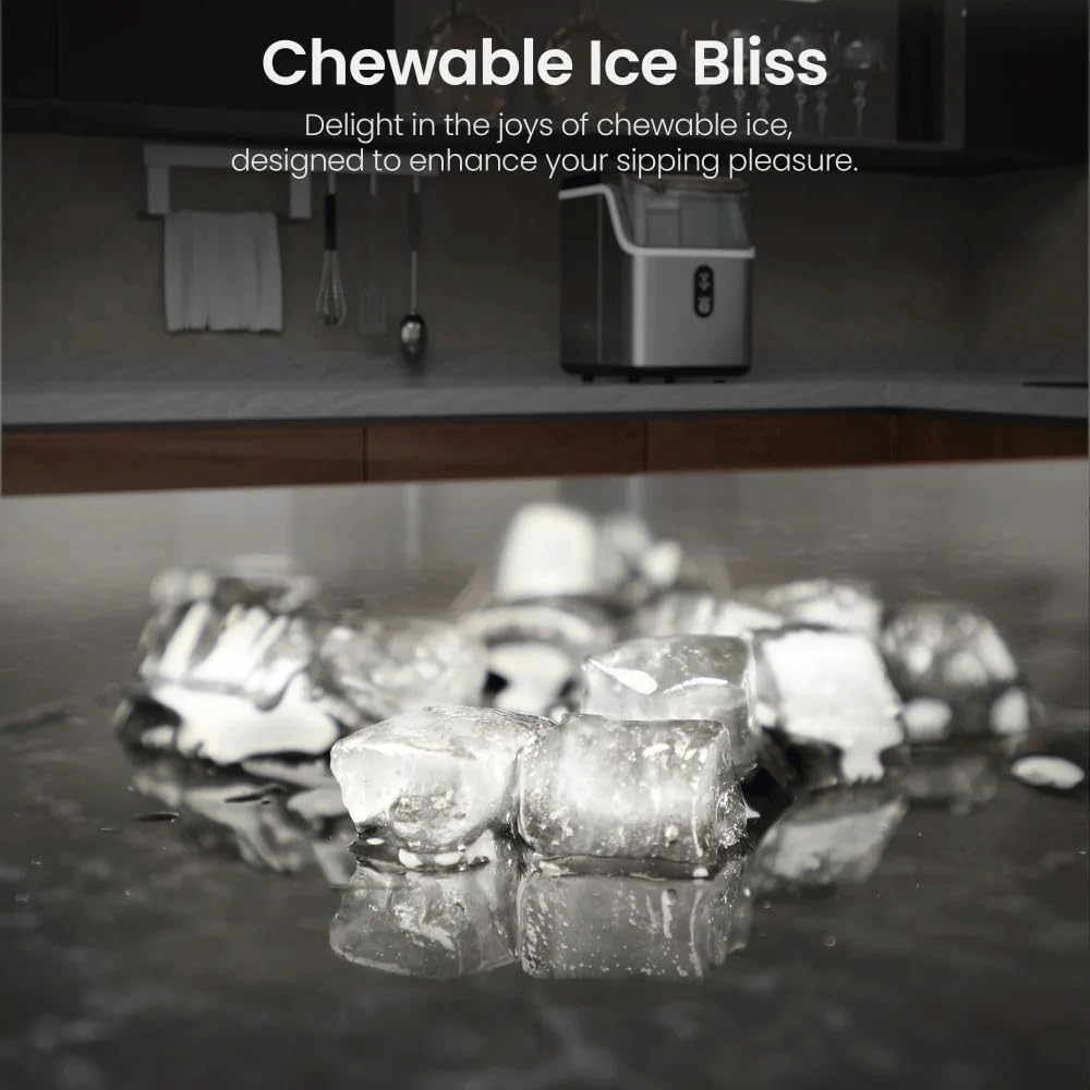 In just 15 minutes, ready to serve you with fresh ice.Crafted by crushed ice maker, chewable nugget ice stands apart.Its delightful crunchiness arises from compacted, layered ice flakes, boasting a slow melt and superior texture.for slushies, cocktails, sodas, and more, it preserves the authentic flavors like no other ice.The transparent casing lets you check ice storage at a glance, and you can savor ice with the included scoop.it's a work of art. With dimensions of 8.66" x 11.3" x 12.68"Set Includes1*Ice machine(no other presentation items included).Warm tips:1. Due to manual measurement, please allow 2-3% error, before you bid, please make sure you don't mind.2. The color may vary due to different displays, please refer to the actual product.The ice is fresh and ready to use