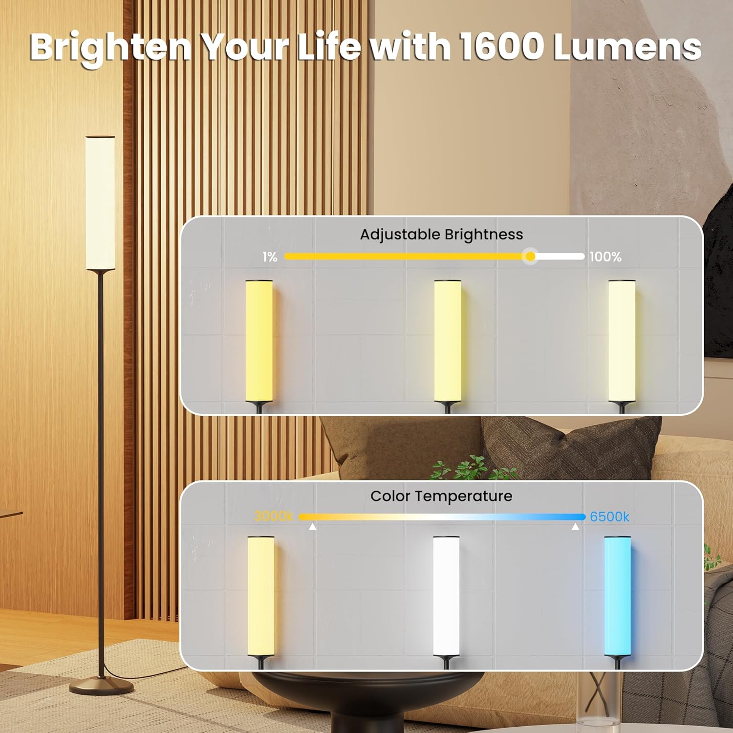 The minimalist floor lamp infuses sophistication into your room decor. The 360° cylindrical lamp head and compact base of the floor lamp elevate space. Tap the button can turn on / off the lamp and long press to adjust the brightness.