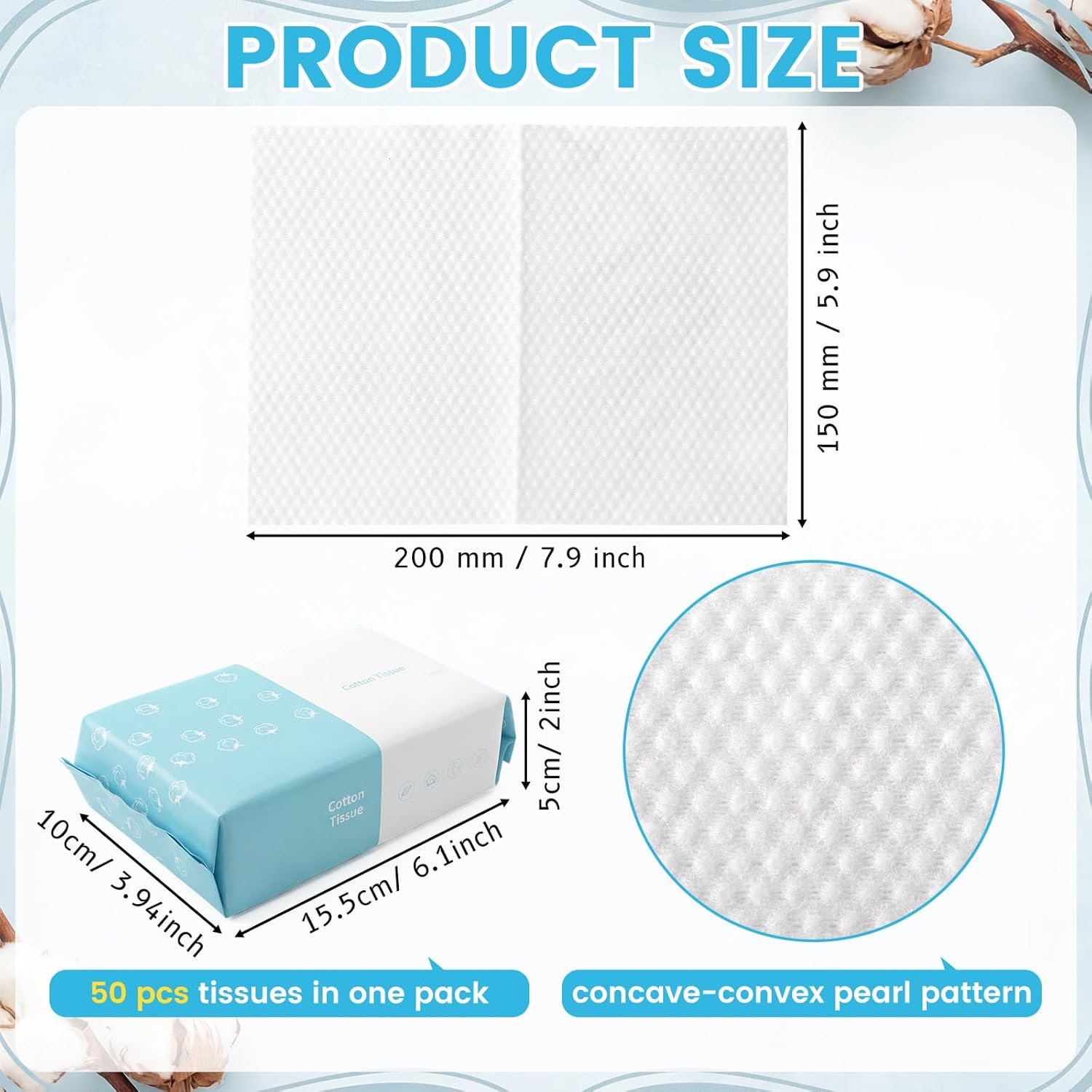 Features: Applicable scenes: Ideal for baby care, removing makeup, and unexpected messes on the go. It can be applied to dry your face after cleansing, or wet to remove makeup and other impurities. Quality materials Made of cotton materials, skin friendly, no bad smell, gentle enough for bottoms, hands, and faces. Specifications: Material: cotton Color: white Product dimensions: 5.9 x7.8 inch Package includes: 24 x Wash face tissue (1200 pieces) Notes: Manual measurement, please allow slight errors on size. The color may exist a slight difference due to different screen displays