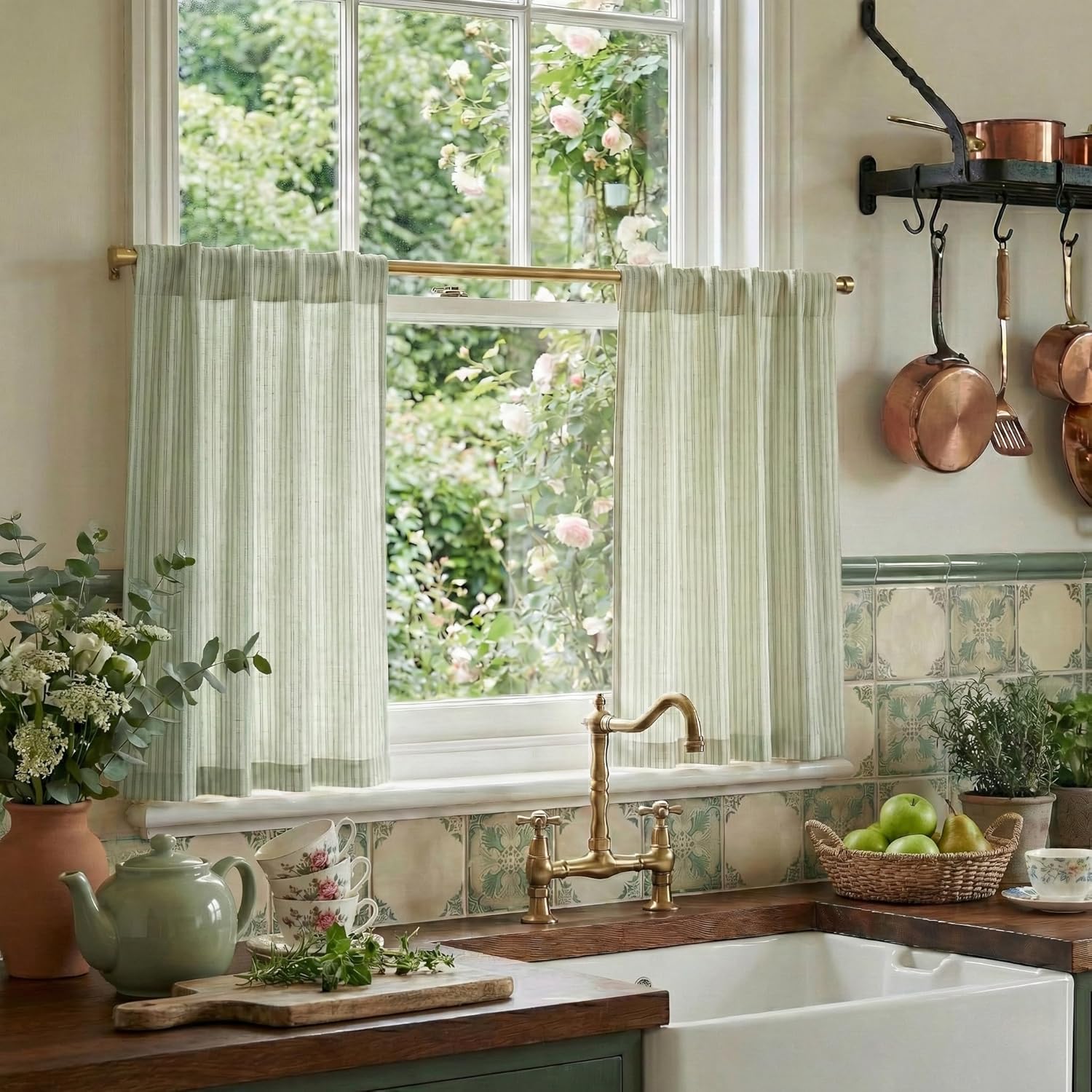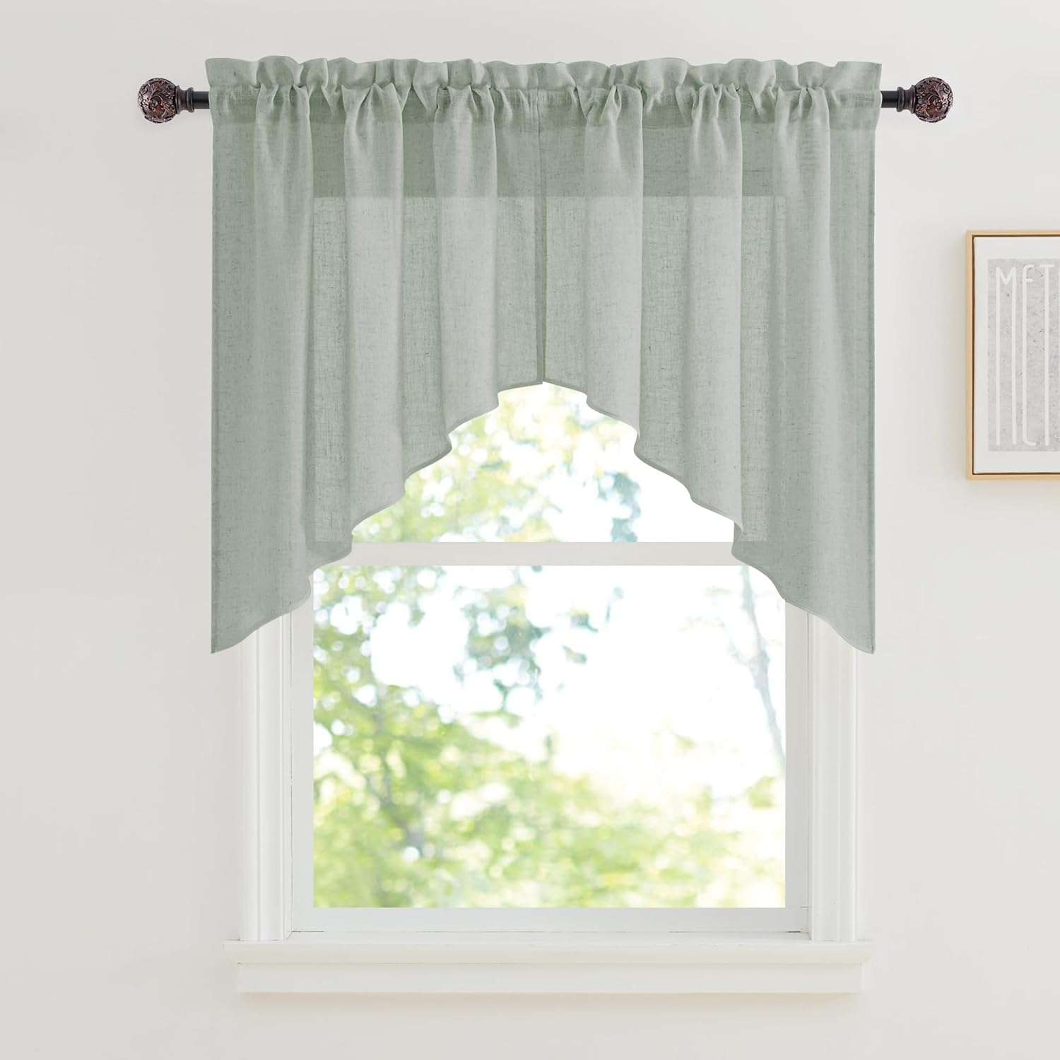 WELL MADE - Made of flax linen fabric. Dual rod pockets top with 3" diameter, universal fit to most of curtain rods. Package includes 2 panels and each panel measures 36" width (total width 72" ). FLAX LINEN BLEND - Solid linen curtains with subtle striped accents, looks modern and elegant then usual plain sheers. Unlike ordinary sheers, the line weave makes curtains more aesthetic, beautifully frame your windows with a hint of enchantment. LIGHT FILTERING - Soften sunlight and provide you with a hazy space and soft vision. Saving energy, keep privacy and protect your furniture from fading. The sheer linen curtains are formaldehyde-free and no odor, safe and green to kids and pets. HALF PRIVACY - Superior balance of light and privacy. The semi sheer curtains let light peek through while create a private view. Excellent for living room, bedroom, kitchen, camper,bathroom, cafe... EASY CARE - Regular light dusting with a cloth in most circumstances. Cold machine wash for more thorough dust removal. Mild detergent no bleaching. If there are any problems, please contact us first and we will be responsible for it.