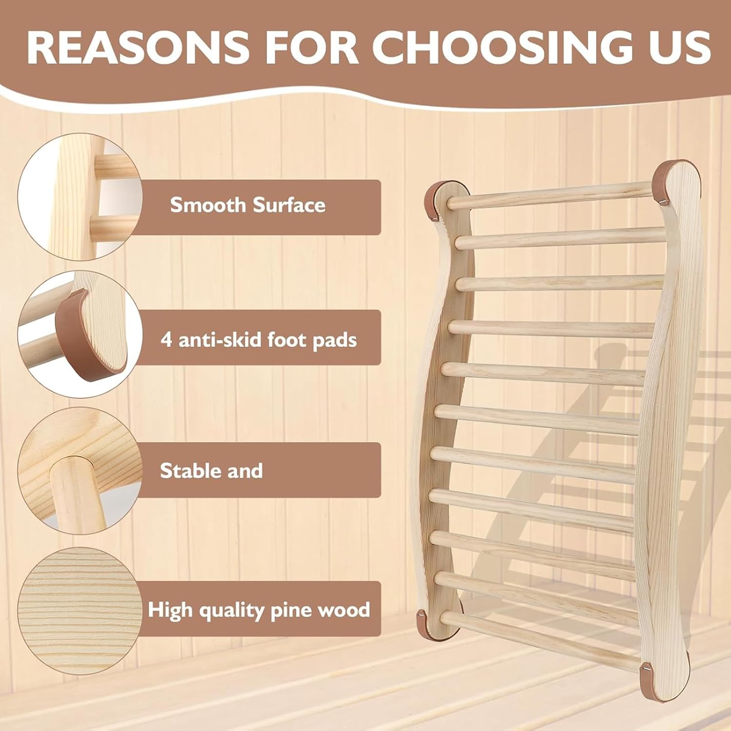 Sauna Accessories Sauna Backrest Wooden Slip Ergonomic Chair Back Backrest for SaunaFeatures:Crafted from natural pine wood, this ergonomic sauna backrest enhances lumbar for secure placement in saunas.The frame maintains safe distance from heating panels for heat distribution.Ideal for wellness enthusiasts and sauna users seeking spinal alignment during home relaxation.Perfectly complements residential sauna rooms, or spaces requiring heat safe furniture component.Its easy installation ensures immediate use as a standalone backrest or paired with seating unit.Specifications:Component: WoodProduct Size: about. 50x40cm/19.69x15.75inPackage Includes:1pc Sauna BackrestNote:This product is ONLY a Backrest, NOT a chair.Please allow 1-2cm errors due to manual measurement. Due to difference between different monitors, the picture may not reflect the item actual color.