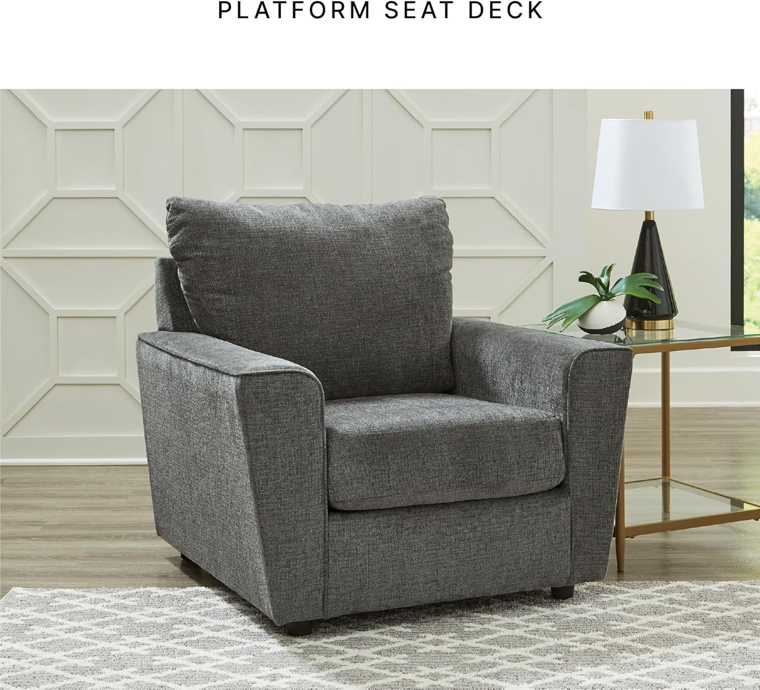 What’s new in neutrals? Shades of gray, of course. Embrace this sophisticated design trend with this gorgeous chair, which offers a clean-lined, contemporary style at a comfortably cool price. Sure to lift your spirits, the plush chenille fabric is fabulously neutral. Contemporary flared arms give it a distinctive flair. Chairs are available in all different styles, sizes and shapes at Ashley and can be used to fill the need in any room in your house. You’ll find plenty of accent chairs that combine beautiful design with quality materials to create a welcoming seat. The unique design and fabric of an arm chair or armless chair can turn it into quite a conversation piece. Genuine leather, microfiber or deeply tufted upholstery, among other coverings, are in Ashley’s selection of chaise lounge chairs. Signature Design by Ashley is a registered trademark of Ashley Furniture Industries, Inc.