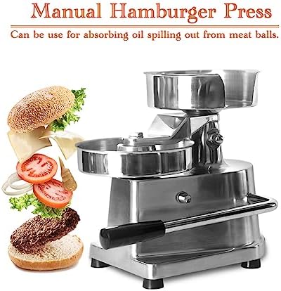 Upgrade your burger-making experience with our Manual Hamburger Press Machine, designed for burger enthusiasts who value quality and convenience. This essential kitchen tool allows you to create perfectly-shaped patties with ease, ensuring your burgers are not only delicious but also visually appealing. Our burger patty maker comes in three versatile sizes—100mm, 130mm, and 150mm—allowing you to customize your burgers according to your preferences. Each size features a specifically designed food tray, ensuring your patties are uniform and ready for grilling. Compact and user-friendly, this hamburger press fits seamlessly on any kitchen countertop, measuring just 22*16.5*26.5cm. Weighing between 4.6kg and 5.1kg depending on the size, it is lightweight and portable, making it easy to store or take to barbecues and gatherings. The thoughtful packaging dimensions—28*24*31cm for the 100mm and 130mm sizes and 29.5*25.5*32cm for the 150mm size—ensure safe delivery to your doorstep. Included in the package is a user manual that guides you through the burger-making process, along with 500 complimentary patty papers, adding a professional touch to your creations. Elevate your culinary skills and impress your family and friends with perfectly crafted burgers. Invest in our Manual Hamburger Press Machine today and enjoy the satisfaction of making delicious, homemade patties every time.
