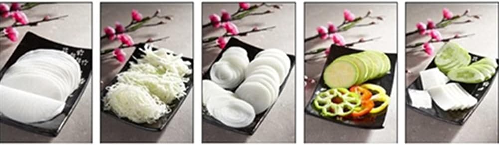 👰Product description Parts replacement and safety holder usage 1. From the bottom of the body, push the part upward and take it out. 2. Use the safety belt while pressing the vegetables lightly from the top. -2mm shaved parts (thin sticks) Set the dial to the second level. -3~4mm parts (thick) After inserting the parts, turn the dial to 3rd for 3mm and set the dial to 4th for 4mm. -Plain blades are used for mussam/cabbage vegetables/onion slices, and use after selecting the thickness in 1~4 layers. Precautions for use 1. The blade is dangerous, so be sure to use a safety holder. 2. When using a thick blade, be sure to set the dial to 3~4 steps. 3. Be careful of fire and keep out of reach of children. Product composition TULGIGS Multi Slicer+Flat blade Safety holder 2mm blade 3~4mm blade Insert box