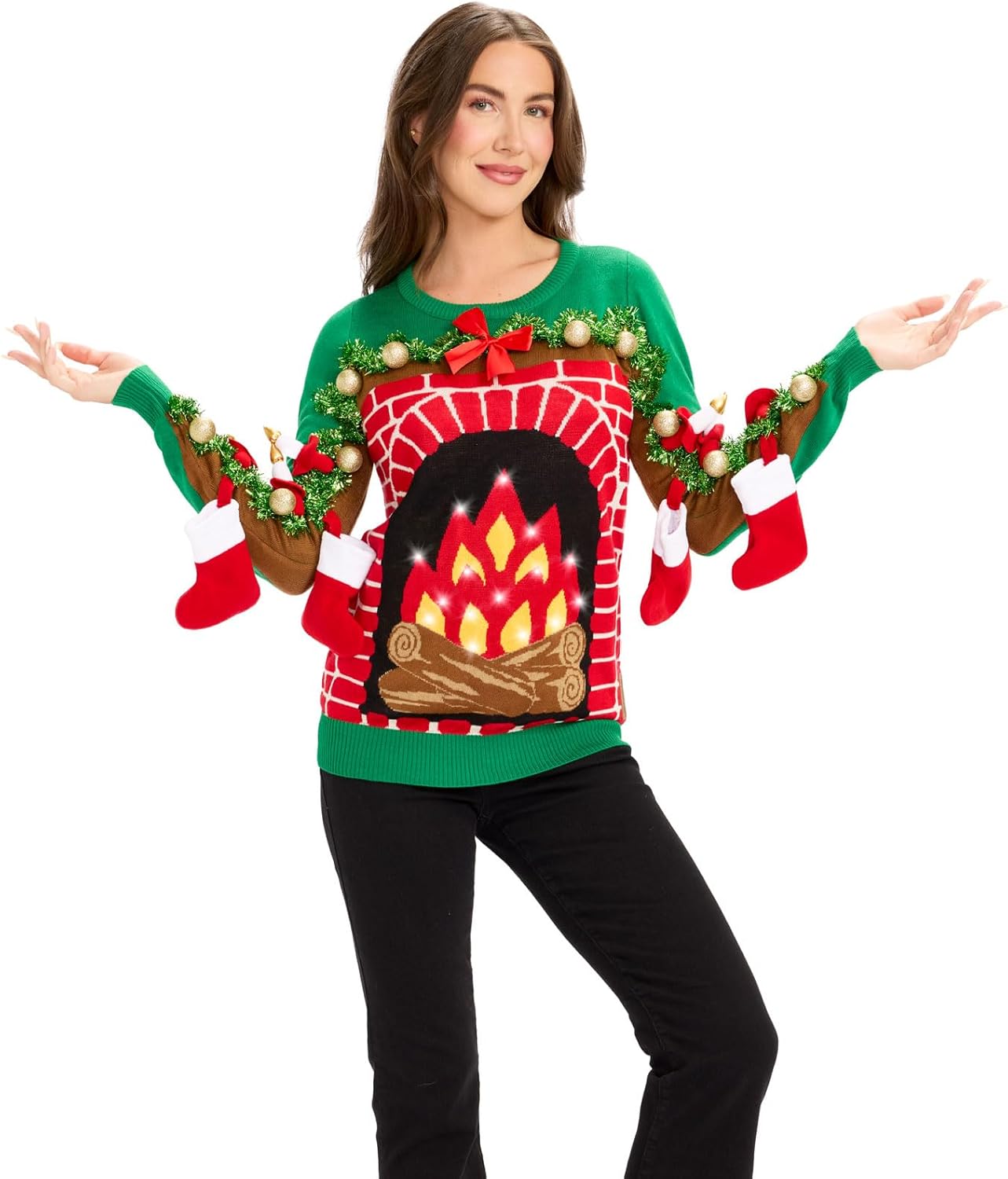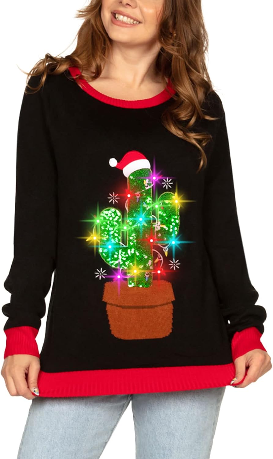 Is it a bird? Is it a plane? Is it a bunch of kitties driving Santa's sleigh? Yes it is. This is one ugly Christmas sweater that you'll be talking about long into next year. We're throwing out the reindeer and turning up the heat in this long-sleeved Christmas sweater. Just when you thought cats couldn't be any more awesome.