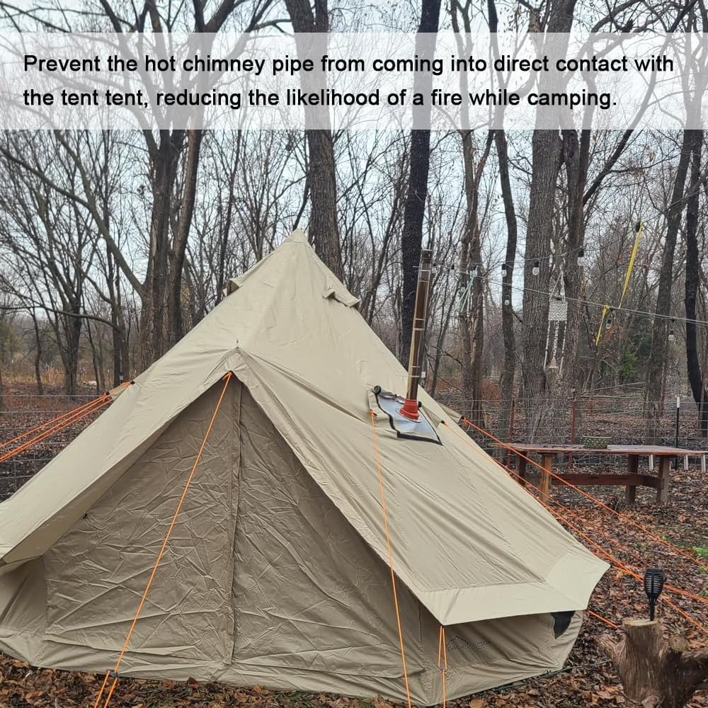 Features: Effective protection: the stove pipe set for tents uses a three-wall pipe segment to prevent the hot chimney pipe from coming into contact with the tent directly. This significantly reduces the risk of fire when camping. In addition, a tight seal at the chimney pipe outlet ensures a safe and comfortable user experience. Can be cut to size: the silicone ring is cut to size and compatible with chimney pipes of 4.5-10 cm diameter (diameter over 1.77 inches must be cut by yourself). The waterproof pipe set has a height of 9 cm and a base diameter of 16 cm. Please check the size of your chimney pipe before purchasing. Sturdy and durable: The stove pipe set for tents is made of high-quality silicone and metal. It is heat-resistant, flexible and shatterproof, does not deform or melt. Easy installation: simply cut the matching holes in the tent, loosen the screws and nuts on the base, insert the metal rings and silicone sleeves in the correct order, tighten the screws and insert the chimney. A wrench for easy installation is included. Versatile use: the tent stove set fits most camping tent chimney pipes and is suitable for bell tents, ovens, greenhouses, yurts, workshops and all rooms that need a reliable trigger. Specifications: Name: Tent Stove Pipe Connector Material: silicone, metal. Size: 16 x 9 cm / 2.16 x 6.29 x 3.54 inches. Colour: orange. Package includes: 1 x stove pipe connection for tents