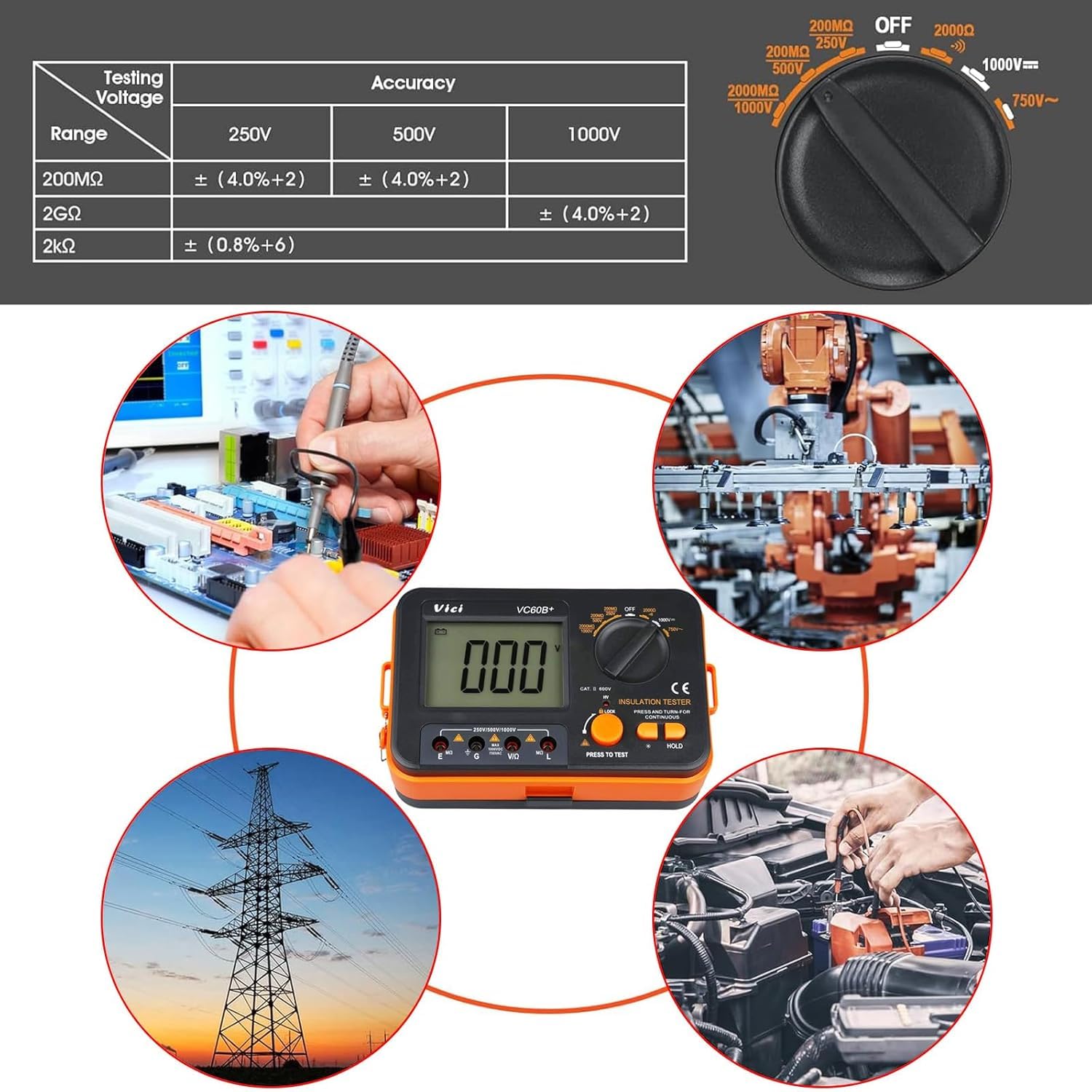 | Included Components | 1pc VC60B+ Digital Insulation Resistance Tester |