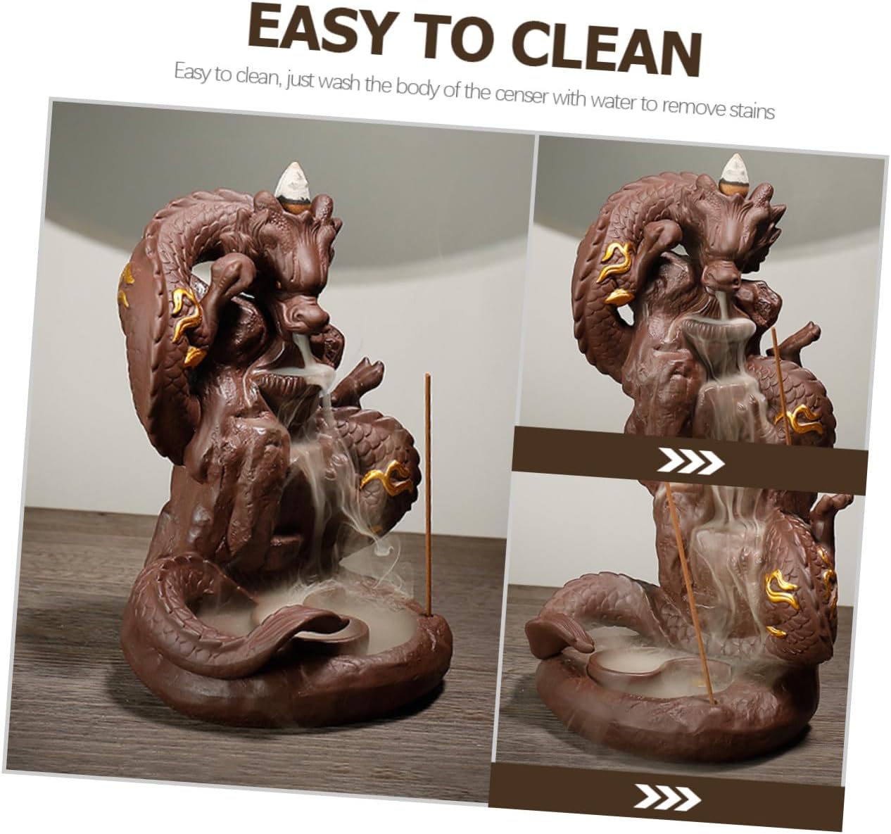 Package Include 1 x Backflow Incense Burner Features -Product Info:incense burner -Color: Brown -Size: About 18.50X14.00X12.00cm/7.27X5.50X4.72in -Material: Purple Sands - One-piece molding, vigorous atmosphere, creative dragonappearance, unique charm Incense Holder Home Adornment. - It is made of good materials and has a creative dragon shape design. Fine workmanship and . - You can send it as a housewarming to your friends or family, they will love it Dragon Censer Decor. - Excellent workmanship, carefully down to every detail to give it an appearance Backflow Incense Burner. - Thick material, our product is not easy to damage, which can be used for a long time.Goods DescriptionIncense Holder Great for aroma.Dragon Backflow Incense Holder It comes with the delicate dragon appearance design, can help you completely relax, the level of life.Incense Stick Holder It is an excellent for family, friends, colleagues, etc.Desktop Backflow Censer This item is a decorative backflow incense burner with dragon shape which is well-made with , vivid and delicate