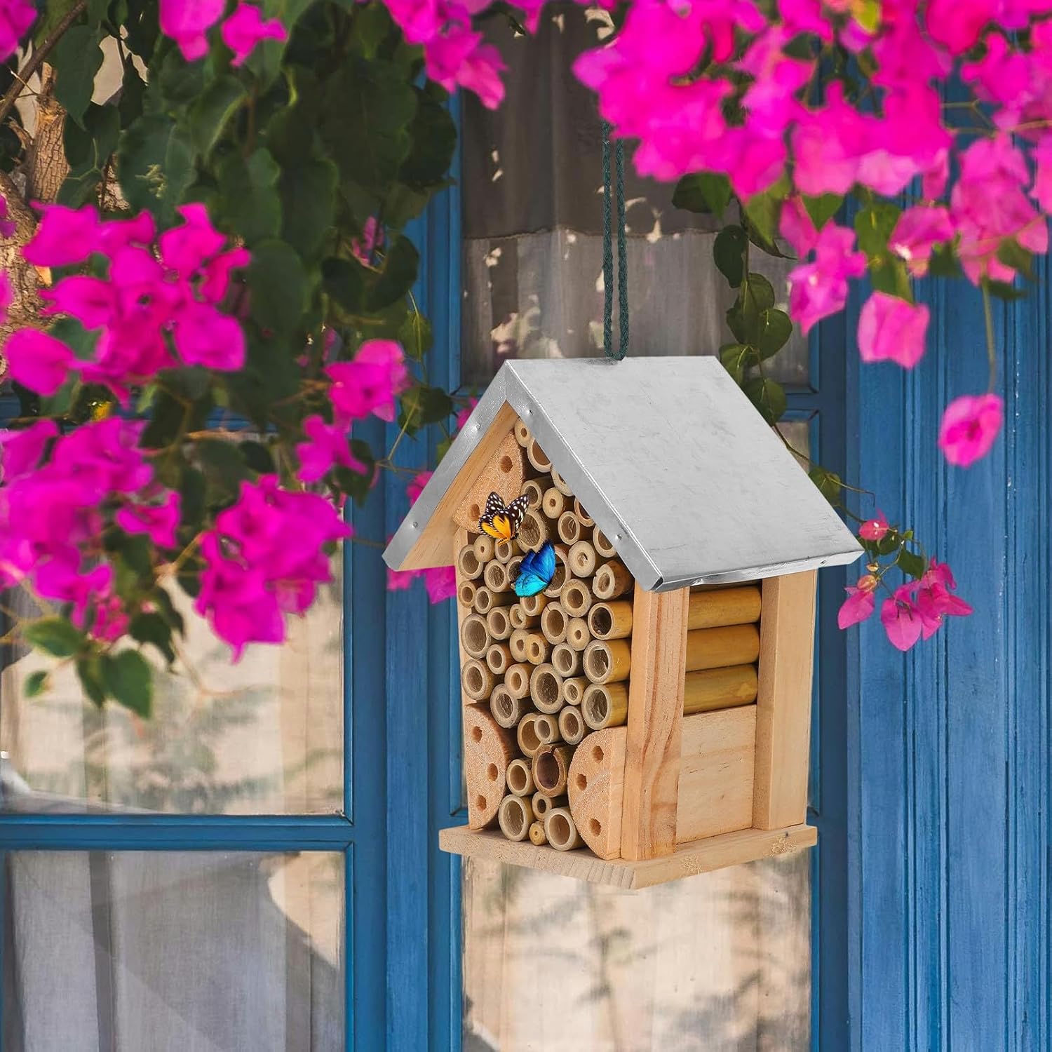 Package Include 1 x insect house Features -Color:Multi -Material:Wood and iron -Product Info:Outdoor hanging insect house -Size:19.00X15.50X12.00cm/7.47X6.09X4.72in -Made from wood and iron materials, the insect house provides a secure habitat for insect. -The insect hotel is great for gardeners, beekeepers, or anyone who wants to help support local pollinators wooden habitat. -The insect house can also keep insect from entering your warm room butterfly wooden house. -The insect house is easy to install and can be hung from a tree branch, fence post, or other suitable location hanging house. -The insect hotel is designed to pollinators and provide a for them to rest and nest nesting house.Goods Description features a finely-crafted and small insect house with no superfluous decorations, making it a beautiful and practical decor for your garden, balcony, patio, or any desired location.pollinator house Our creative insect hotel serves as and cozy environment for insect to live, breed, and weather storms