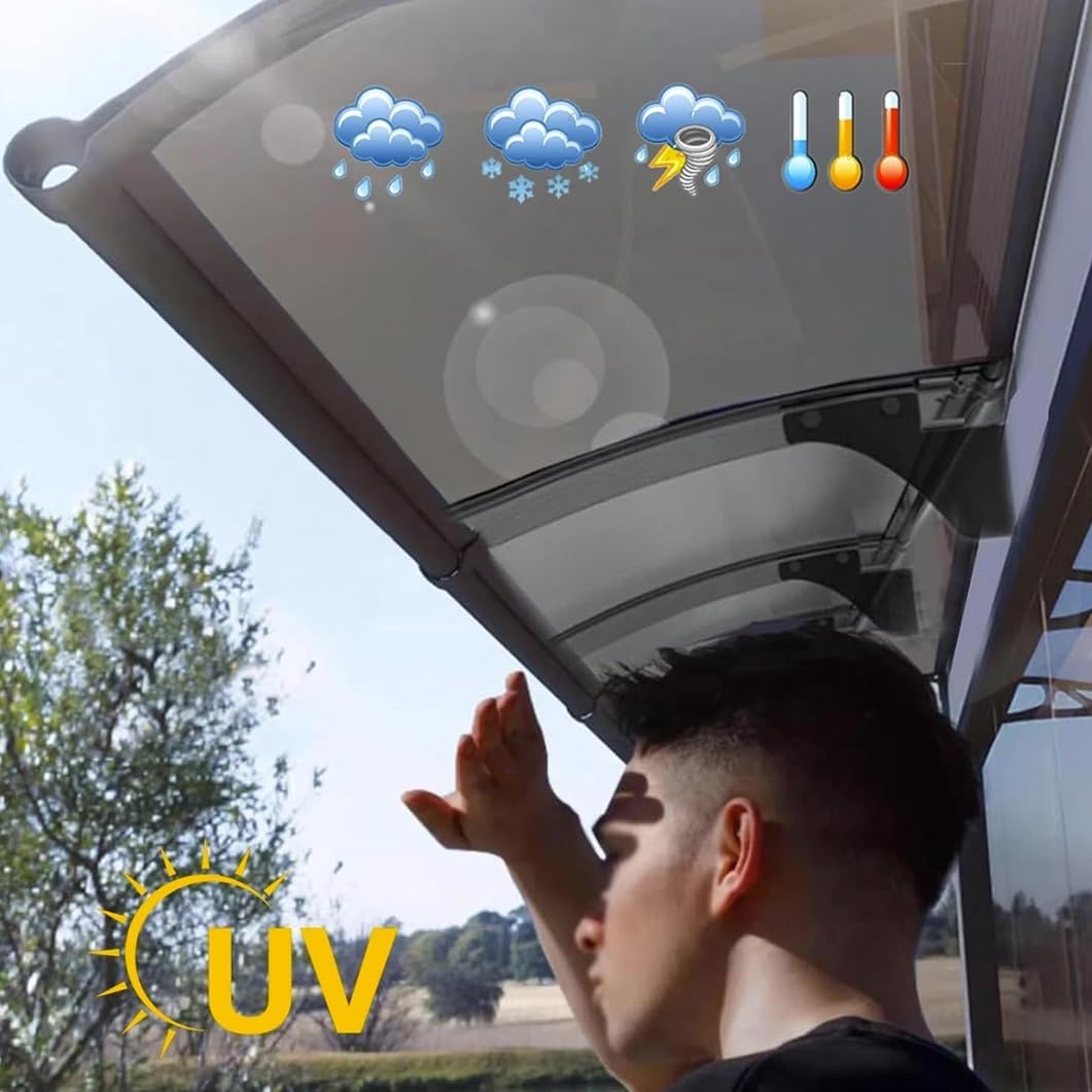 Welcome to YVYKFZD store:- Perfectly integrated into your home or your business area. When you invite your friends to go shopping, they will protect you from rain, snow and ultraviolet rays- The canopy has a super mute effect, reducing the sound of rain to 60 decibels, allowing you to have a quiet living environment, and the rain can be washed and self-cleaning, and the canopy remains smooth and clean● Product parameters:- Name: Awning for door entrance, window door awning canopy- Plate Material: Polycarbonate- Board thickness: 2.5mm/0.1"- Support weight: 150kg/330lbs- Applicable temperature: -40°C~120°C- Product use: Sunshade/rain protection/falling objects- Size: Various sizes, can be spliced, can be customized- Applicable scenes: Doors, windows, balconies, shop, terraces, roofs● Notice:1. Please measure the size of your window or door before ordering, and then decide which size is suitable for your needs. Color matching can be done according to your preferences, please leave a message2. In order to ensure the life of the product, it is recommended to clean up the snow in time3. We recommend two people to install the awning, and please check all fittings and connections regularly, please tighten them if loose4. Product color may vary slightly due to photographic light sources or your monitor5. Please allow slight size differences due to manual measurement