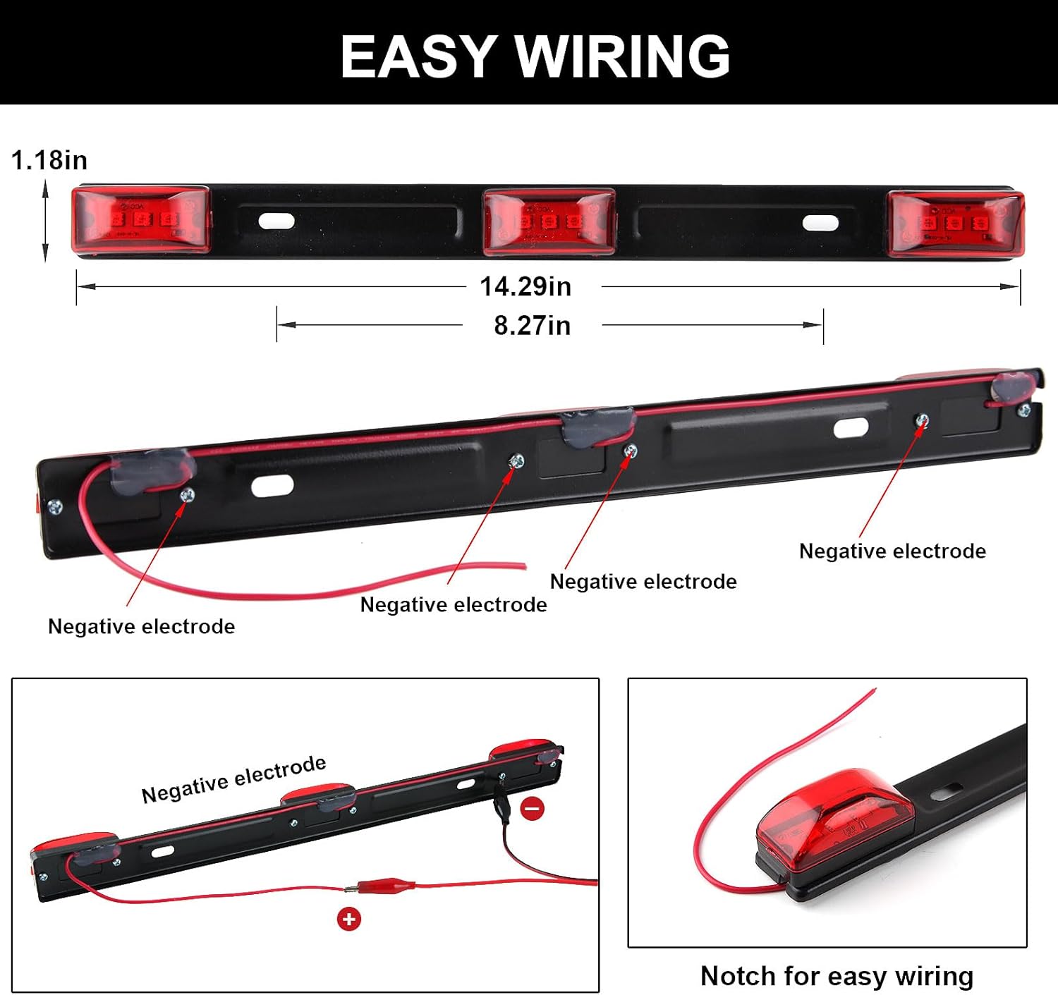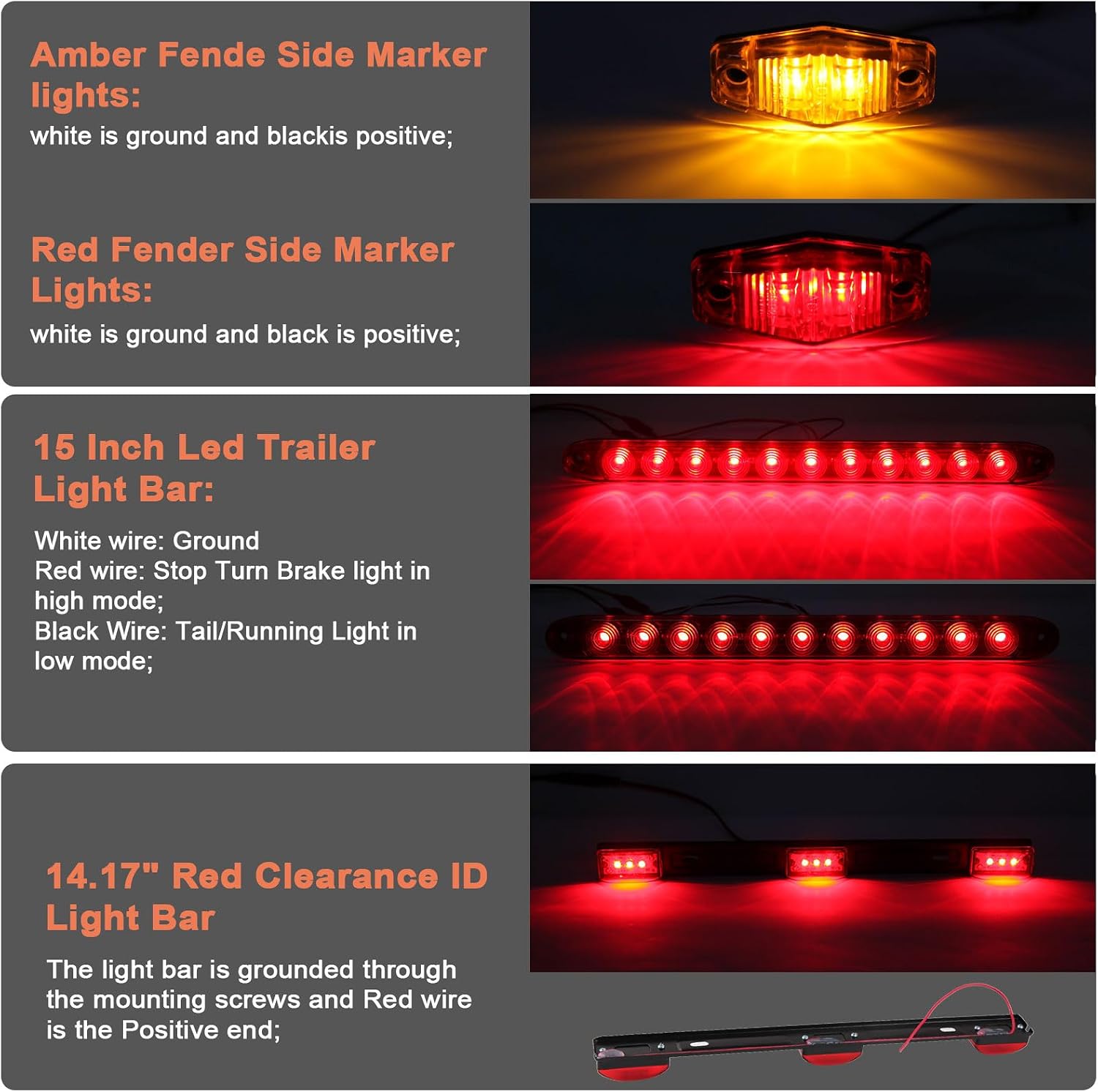 | Included Components | square led tail lights, 14.17" red clearance light bar, 15" led trailer tail light bar, markers, 25ft wiring harness, mounting hardware |