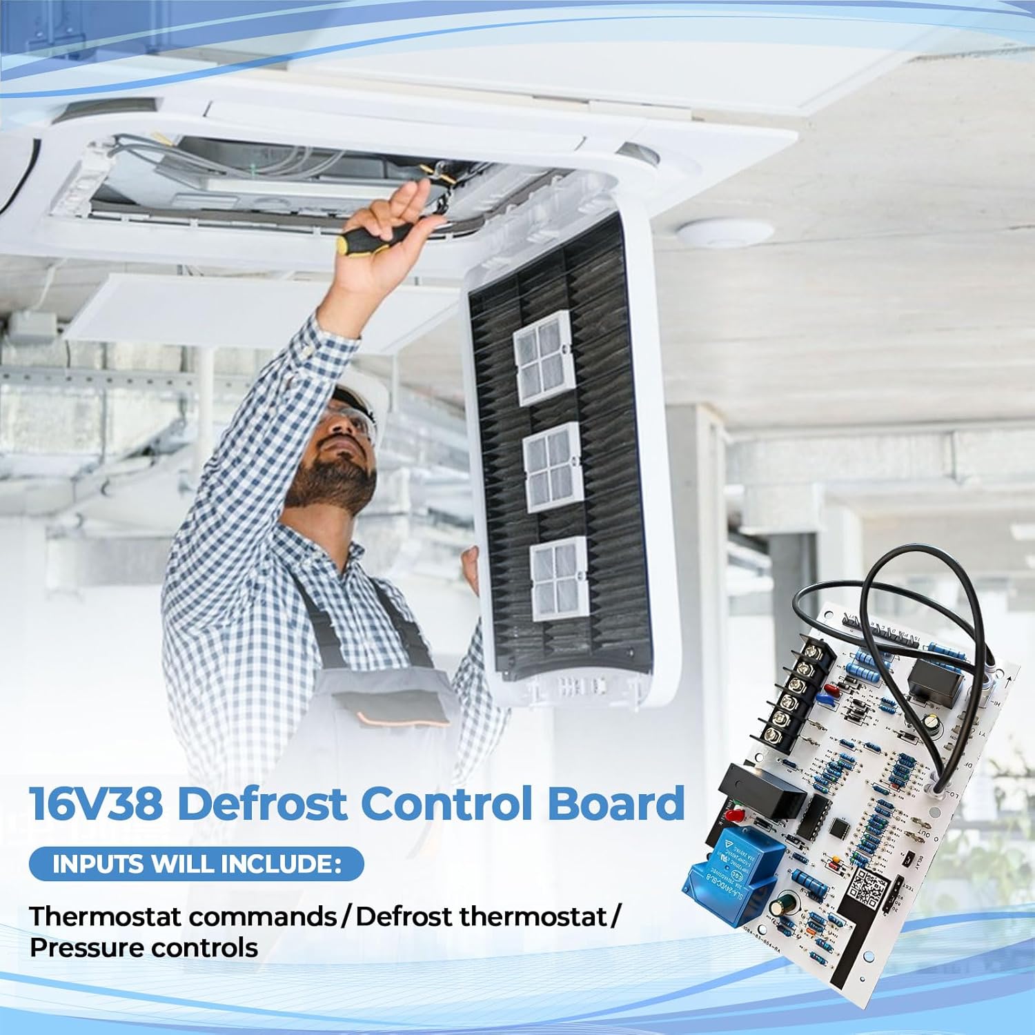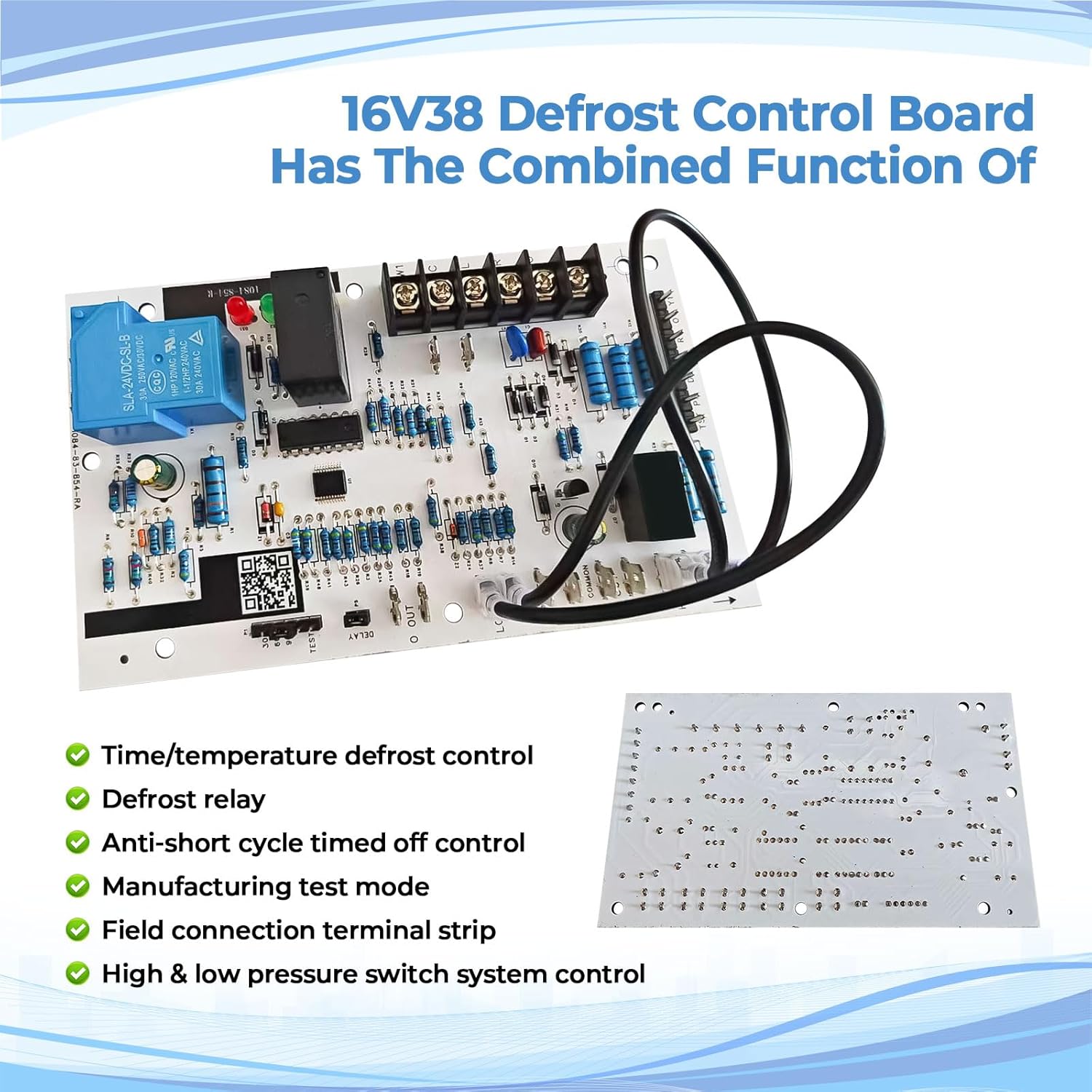 Feature: 16V38 control board ensures precise defrost cycle regulation for peak system performance. Engineered with heavy-duty electronic components for enhanced durability and reliable long-term operation. Specifications: Manufacturer: 16V38 Package Dimensions: 6 x 3.94 x 1.97 Inches Item Weight: 7.05 Ounces Package Includes: 1 x Control Board