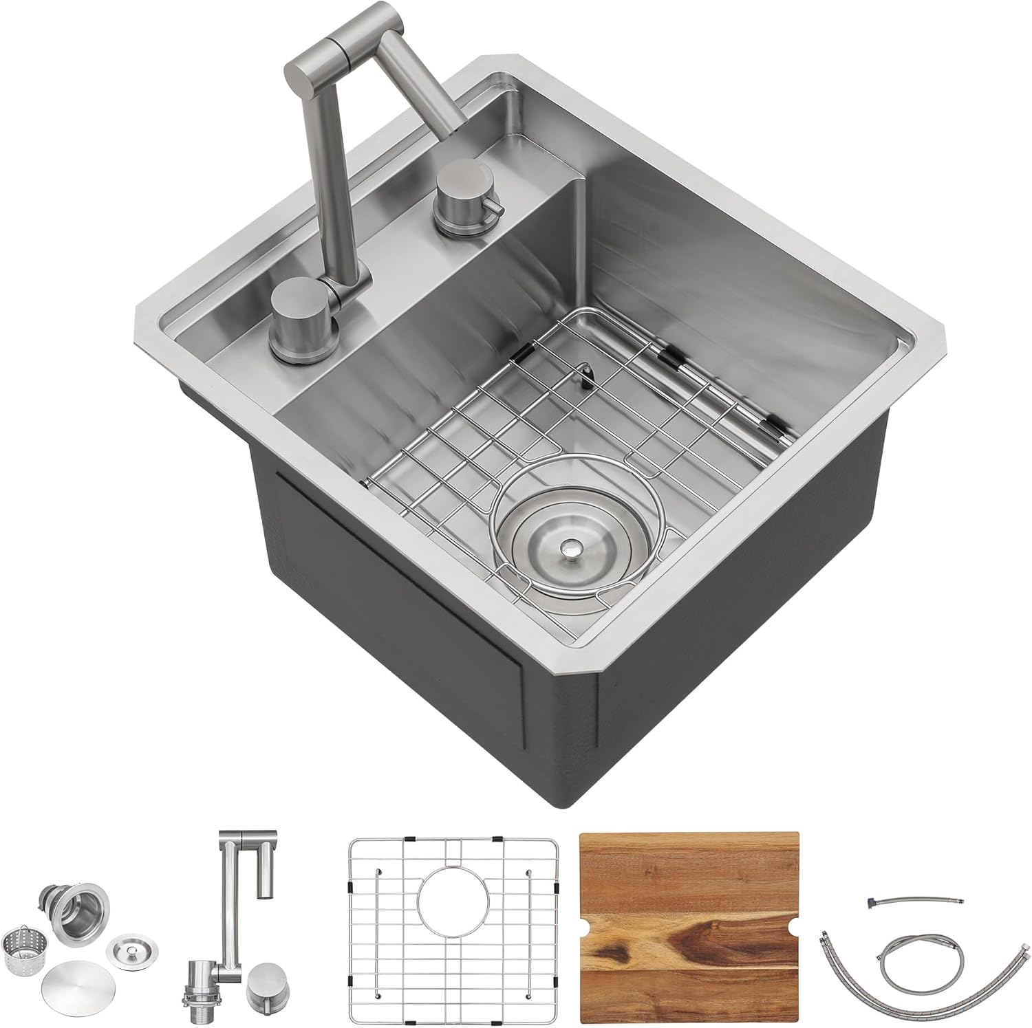 | Included Components | 18 inch undermount gold rv kitchen sink, bottom rinse grid, cover, drain assembly, faucet |