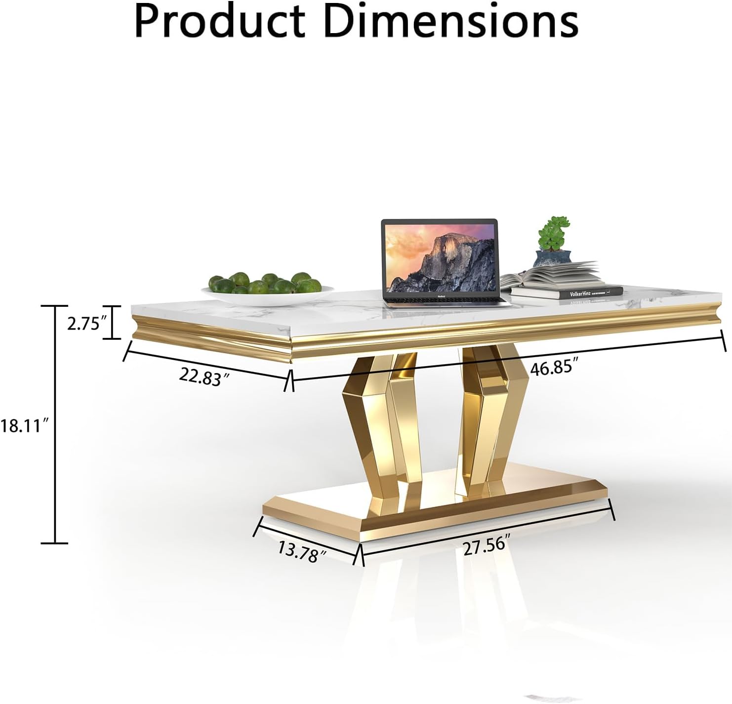Feature Minimalist design style, MDF top with marble texture and stainless steel collocation. The overall atmosphere brought by the two-piece sets, neat and stylish. Medium density fiberboard and thickened sturdy architecture. Non-slip and scratch-resistant foot pads, high quality hardware and easy installation methods. Product details ◆ Product Type: Living room table Set of 2 ◆ Top Material: MDF with marble texture veneer ◆ Frame Finish Application: Mirrored ◆ Base Color: Golden/silver ◆ Frame Material: Stainless Steel ◆ Level of Assembly: Simple Assembly Needed ◆ Estimated Time to Set Up: 30min ◆ Adult Assembly Required: Yes