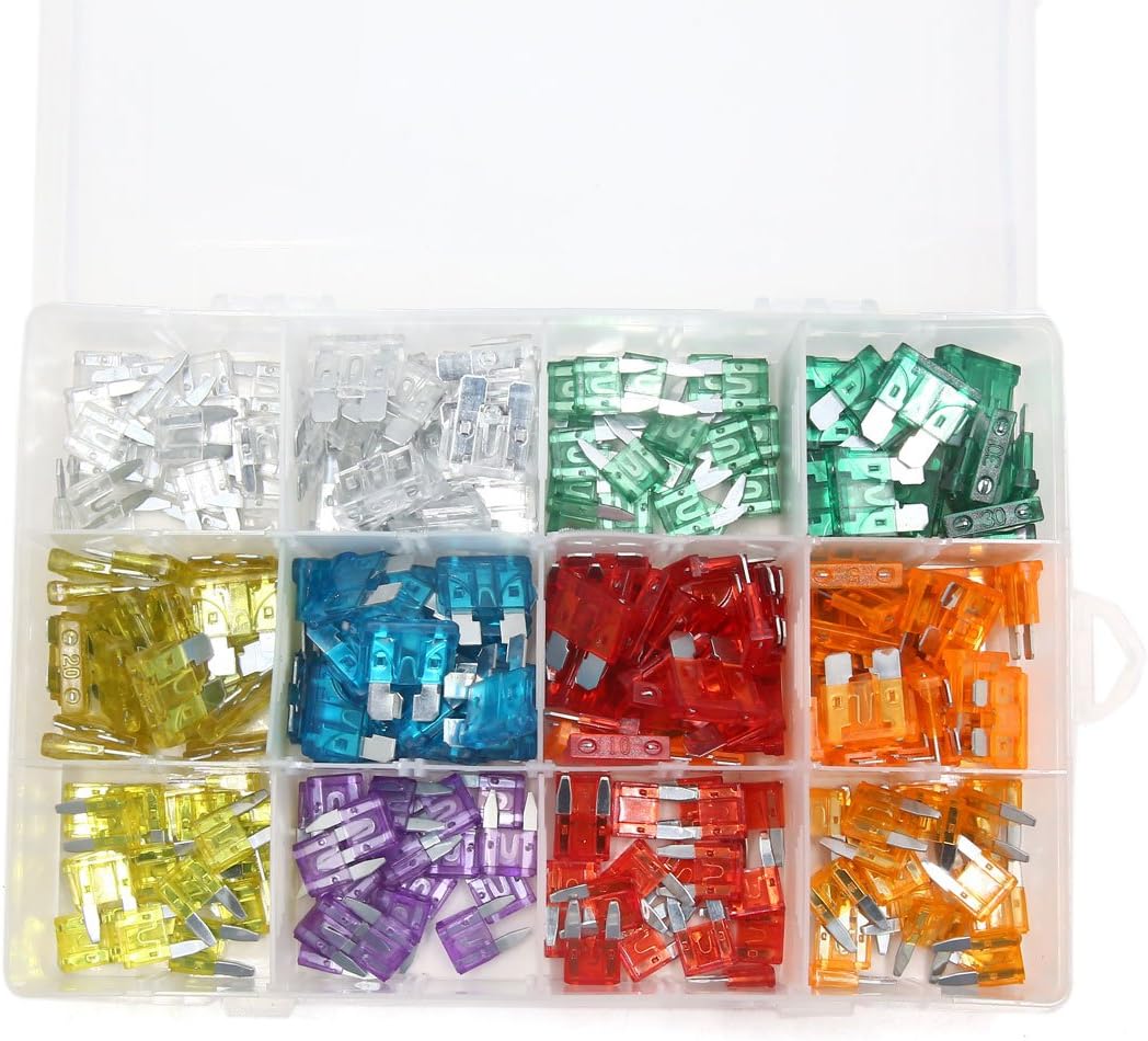 Fuses240Pcs 5A 10A 15A 20A 25A 30A 35A Mini Medium Car Casing Blade Style Fuse KitThe blade fuses are fast-acting, blade-mounting car motorcycle fuses, features plastic housing with push-on spade terminals.Car fuse is designed to protect the power distribution system and electrical device in emergency short circuit.Constructed from durable material that is corrosion and abrasion resistant.Protects electrical and electronic circuitry from overheating.An replacement part for auto, car, vehicle, etc, designed for auto, battery and general DC applications, fit most type of fuse holders or blocks.These automobile blade fuses are perfect for professionals, DIY buyer, and more.Package Included:20Pcs x 5A Medium Blade Fuse (Orange)20Pcs x 10A Medium Blade Fuse (Red)20Pcs x 15A Medium Blade Fuse (Blue)20Pcs x 20A Medium Blade Fuse (Yellow)20Pcs x 25A Medium Blade Fuse (Clear)20Pcs x 30A Medium Blade Fuse (Green)20Pcs x 5A Mini Blade Fuse (Orange)20Pcs x 10A Mini Blade Fuse (Red)20Pcs x 20A Mini Blade Fuse (Yellow)20Pcs x 25A Mini Blade Fuse (Clear)20Pcs x 30A Mini Blade Fuse (Green)20Pcs x 35A Mini Blade Fuse (Purple)