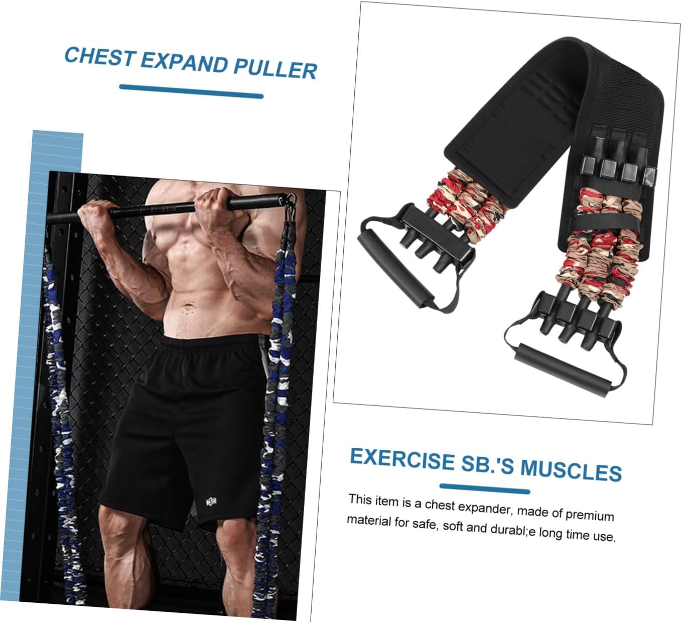 Package List 1 belt, 1 x storage bag Characteristics -Size:90.00X12.00X4.00cm/35.37X4.72X1.57in Durable Chest Expander -Color:Assorted Color Resistance Bands -Material:nylon Chest Expand Rope -It is very space-saving and easy to carry. You can use it at home, office, gym, travel, outdoor Training Equipment for Pectoral Muscle. -Suitable for a wide range of exercises, use resistance bands to and overall fitness Elastic Chest Expander. -It is a choice as a present for people who want to train muscle or Chest Expander. -Our elastic exercise bands serve long time and provide the maximum resistance Chest Expand Pull Rope. -Build with waist cusgion, it provides you protection Pulling Resistant Band.Goods DescriptionDurable Chest Expander With this chest expander, you can train your muscle.Bench Press Belt handle design is comfortable for you to grip.Elastic Chest Expander durable and convenient to use.Chest Expand Rope This chest muscle expander is made of nylon material