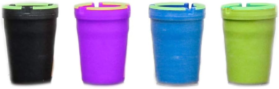 4 X Jumbo Butt Bucket Ashtray Glow In Dark Cigarette Car Cup Ash Holder Portable !! Never stub out your cigarette butt again with this jumbo glow in the dark butt bucket measuring: 5 3/16" H X 4" D cup style ashtray. It is designed to fit cup holders in your car, golf cart, RV, or boat and is slotted to hold up to three cigarettes at a time. The specially designed lid traps smoke and eliminates stale odors while keeping ashes contained and out of sight. When you need to extinguish your cigarette, just drop it in. This ashtray is made from heavy duty plastic and the lid comes off easy for emptying and cleaning. Warning: Completely extinguish butt before inserting into bucket is not fire proof.