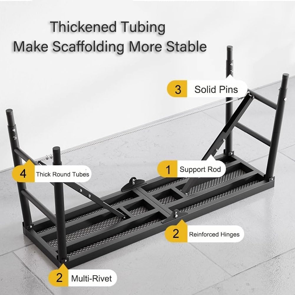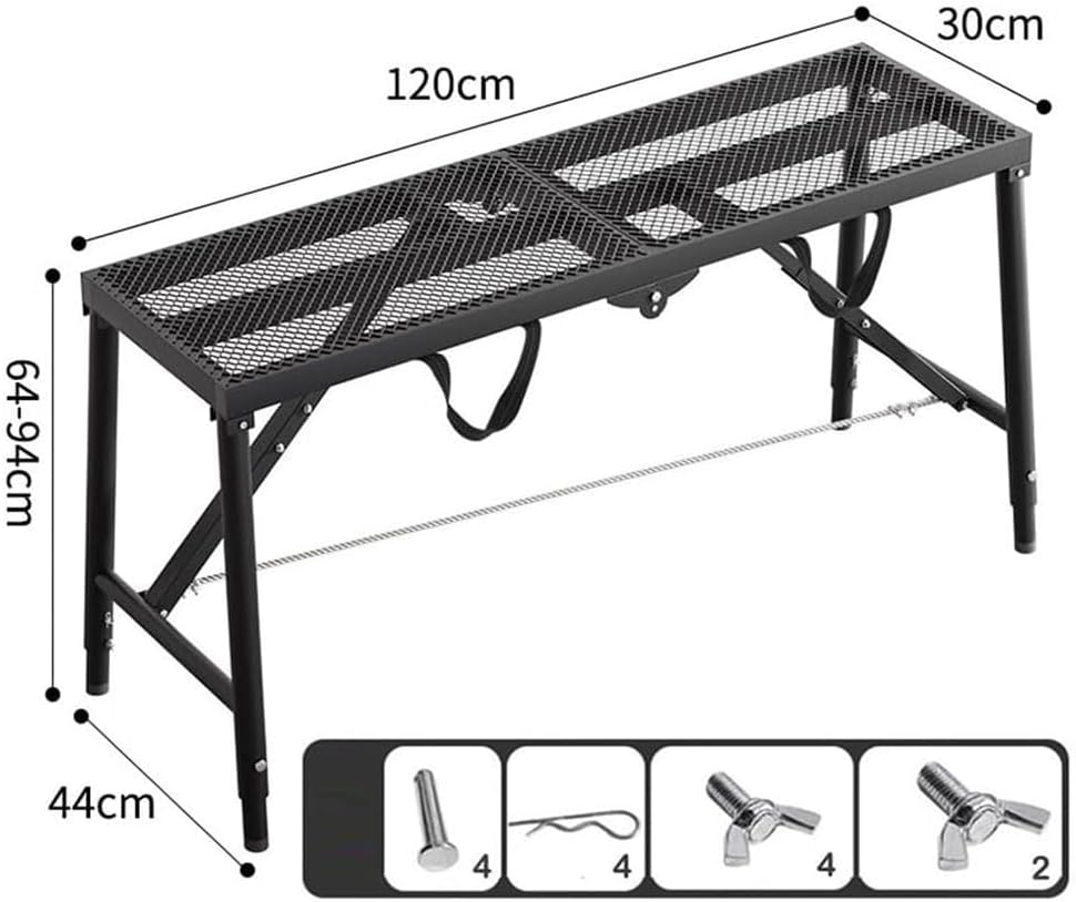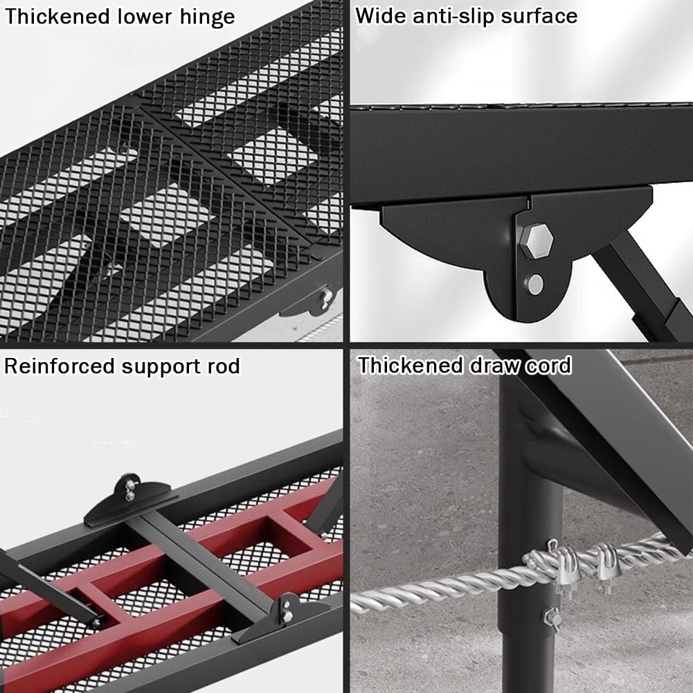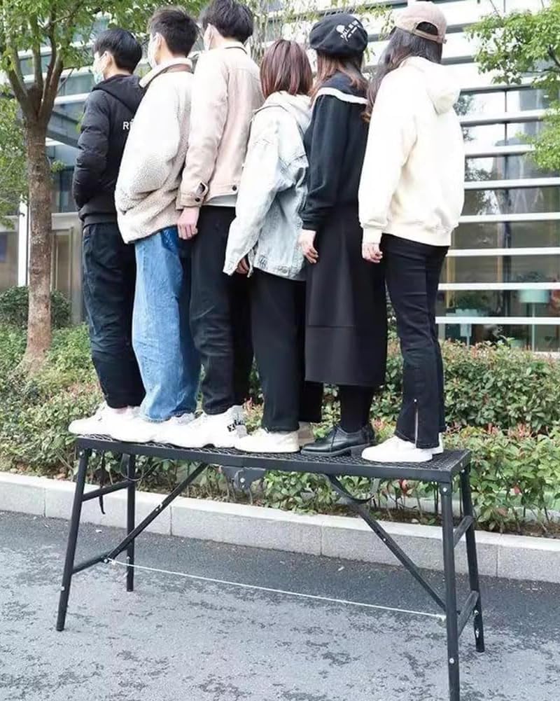 Multifunctional safety ladder working platform, solid and stable quality, foldable design, can be placed in the car or stored at home, small footprint.Can be used as a footrest for cleaning RV, can also be used for painting high walls, cleaning, picking up, repairing and decorating. It is also a good choice to use as a bracket for the barbecue grill.Product parametersMaterial: high-strength carbon steelSize:120*30cm: 120*30*64-94cm (bottom width is 44cm)150*30cm: 150*30*79-119cm (bottom width is 48cm)150*40cm: 150*40*79-119cm (bottom width is 51cm)180*30cm: 180*30*79-119cm (bottom width is 48cm)180*30cm Pro: 180*30*91-151cm (bottom width is 52cm)180*40cm: 180*40*79-119cm (bottom width is 51cm)180*40cm Pro: 180*40*91-151cm (bottom width is 57cm)Color: gray/blackLoad capacity: 750kg/1653LbsWeight: 12kgPackage contentsScaffolding ladder*1